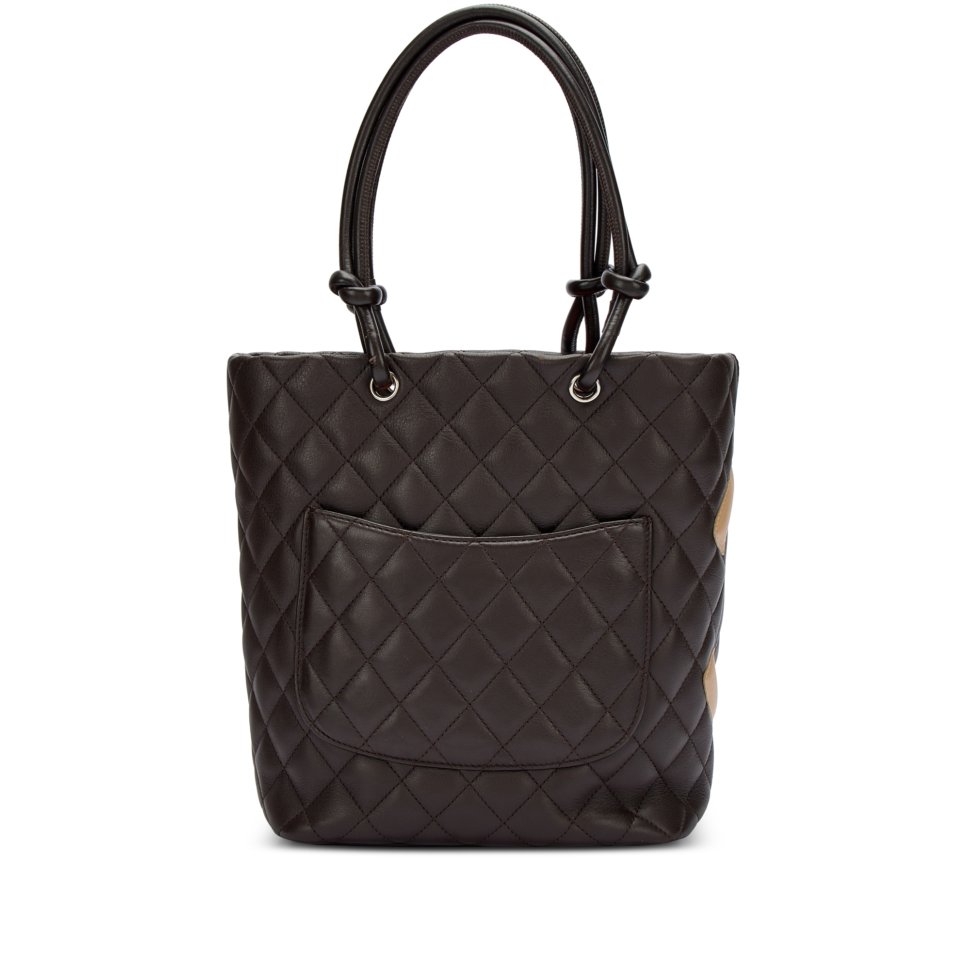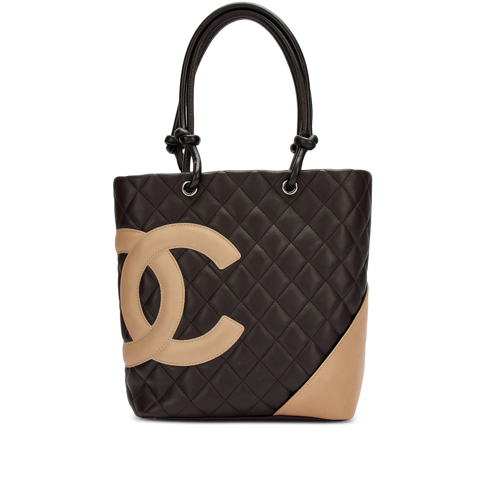 Brown and Beige Quilted Calfskin Cambon Ligne Tote Bag Silver Hardware, 2004-05