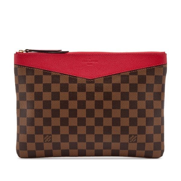 Louis Vuitton Brown Damier Ebene Coated Canvas and Red Leather Daily Pouch Gold Hardware, 2019This bag is lined with red microfiberIncludes care card and dustbagThis item is final sale and not eligible for return