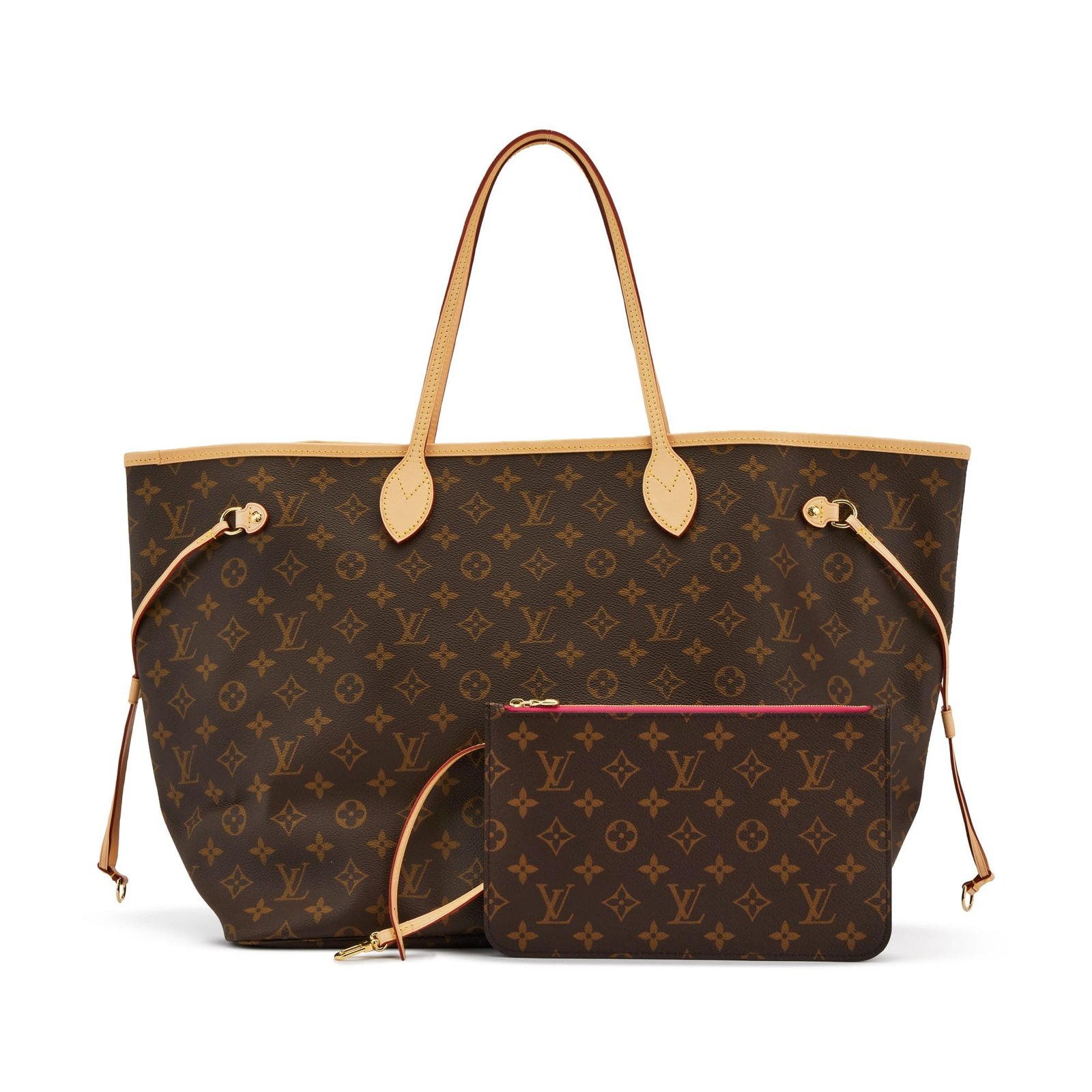 Louis Vuitton Brown Monogram Coated Canvas Neverfull GM Gold Hardware, 2021This bag is lined in striped peony textile materialIncludes zip pouch, tether, dustbag and boxThis item is final sale and not eligible for return