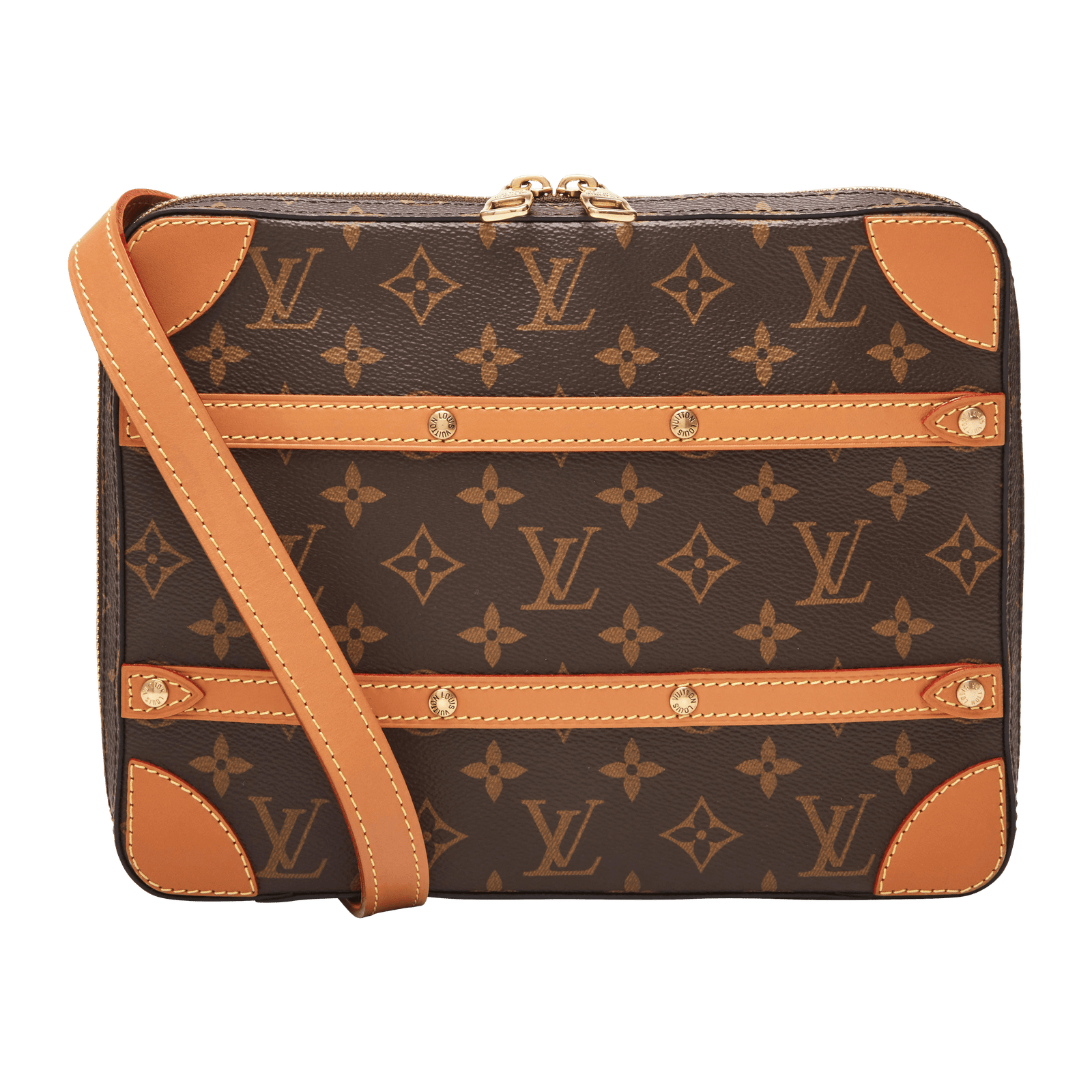 Louis Vuitton Brown Monogram Soft Trunk Messenger PM in Coated Canvas with Natural Cowhide Trim and Gold Tone Hardware, 2019