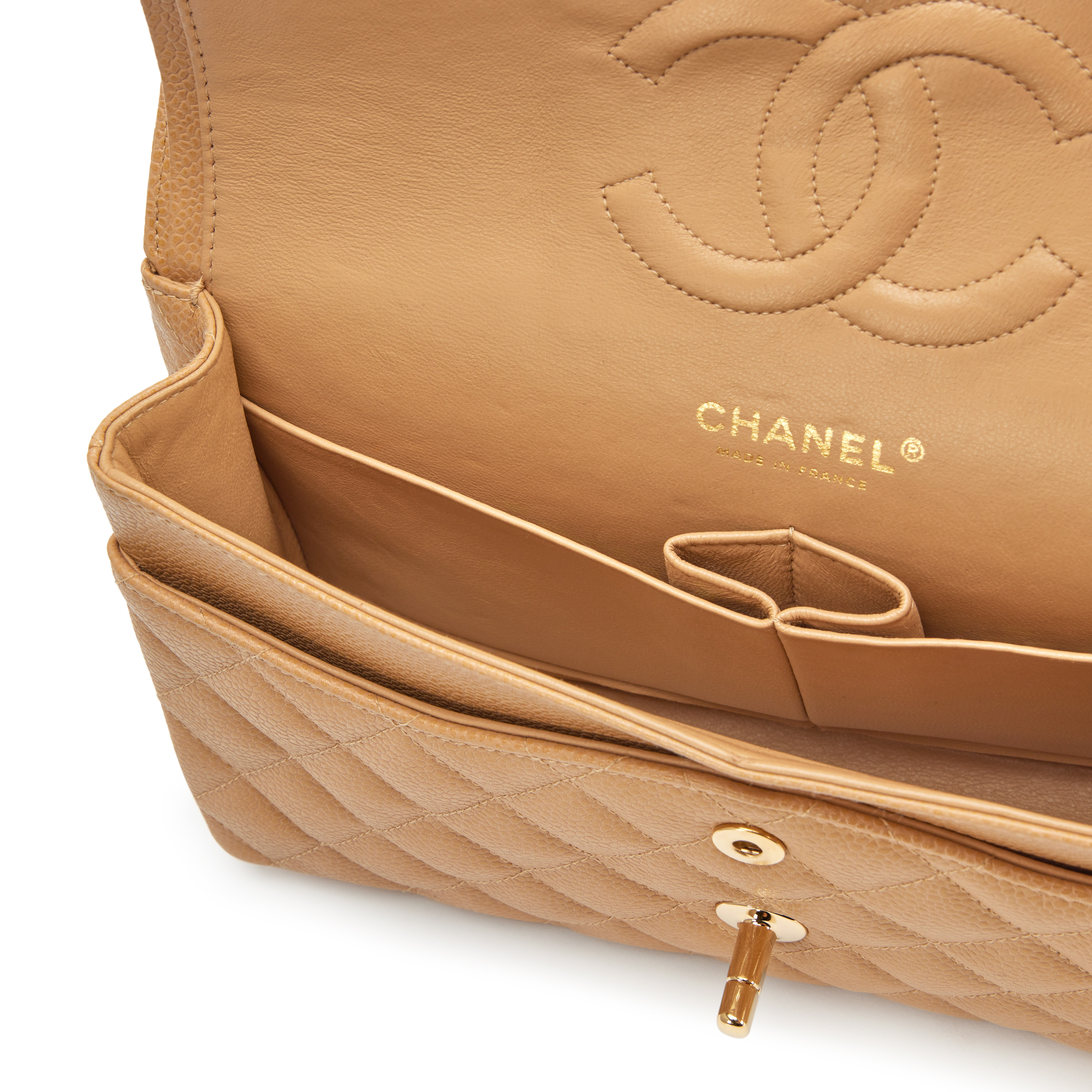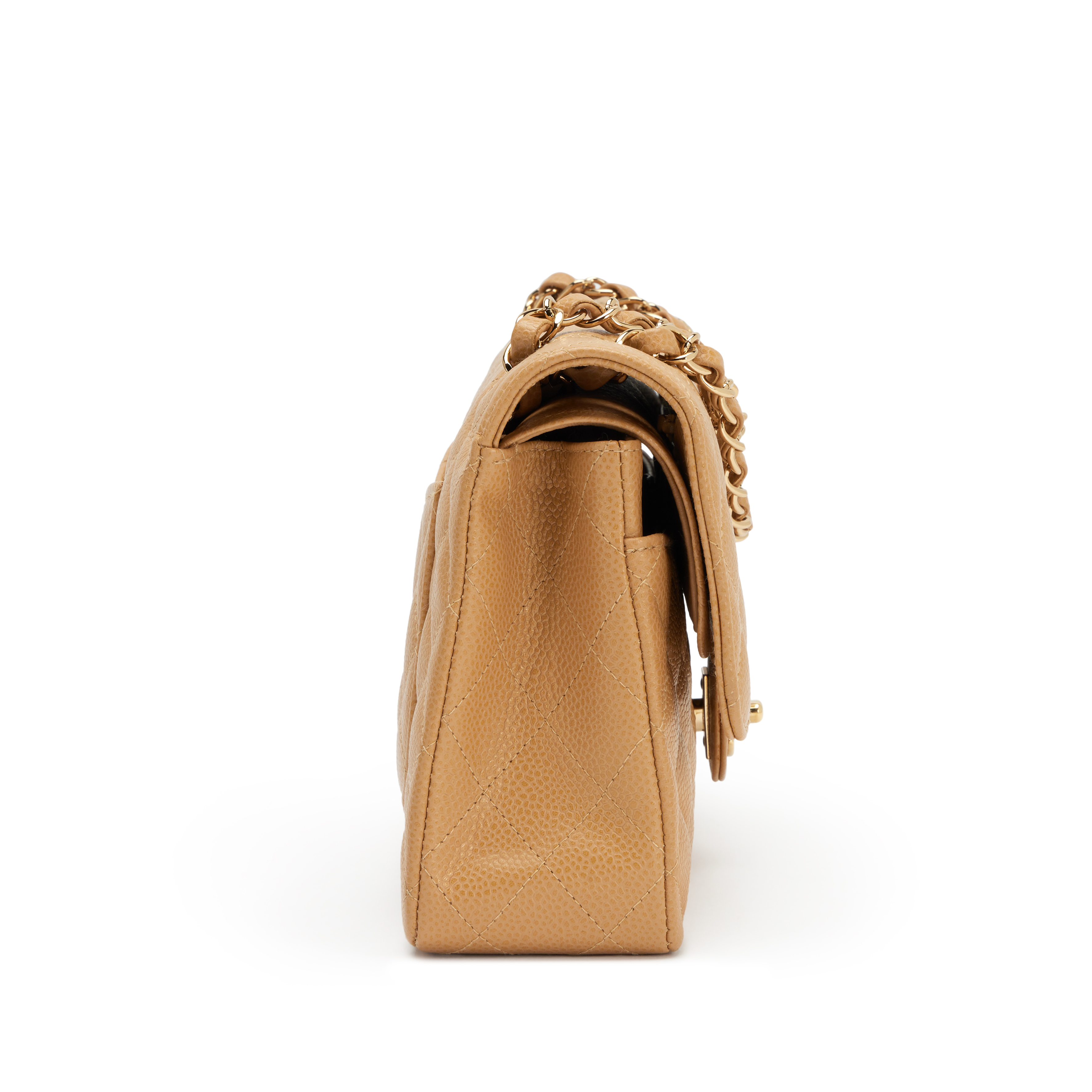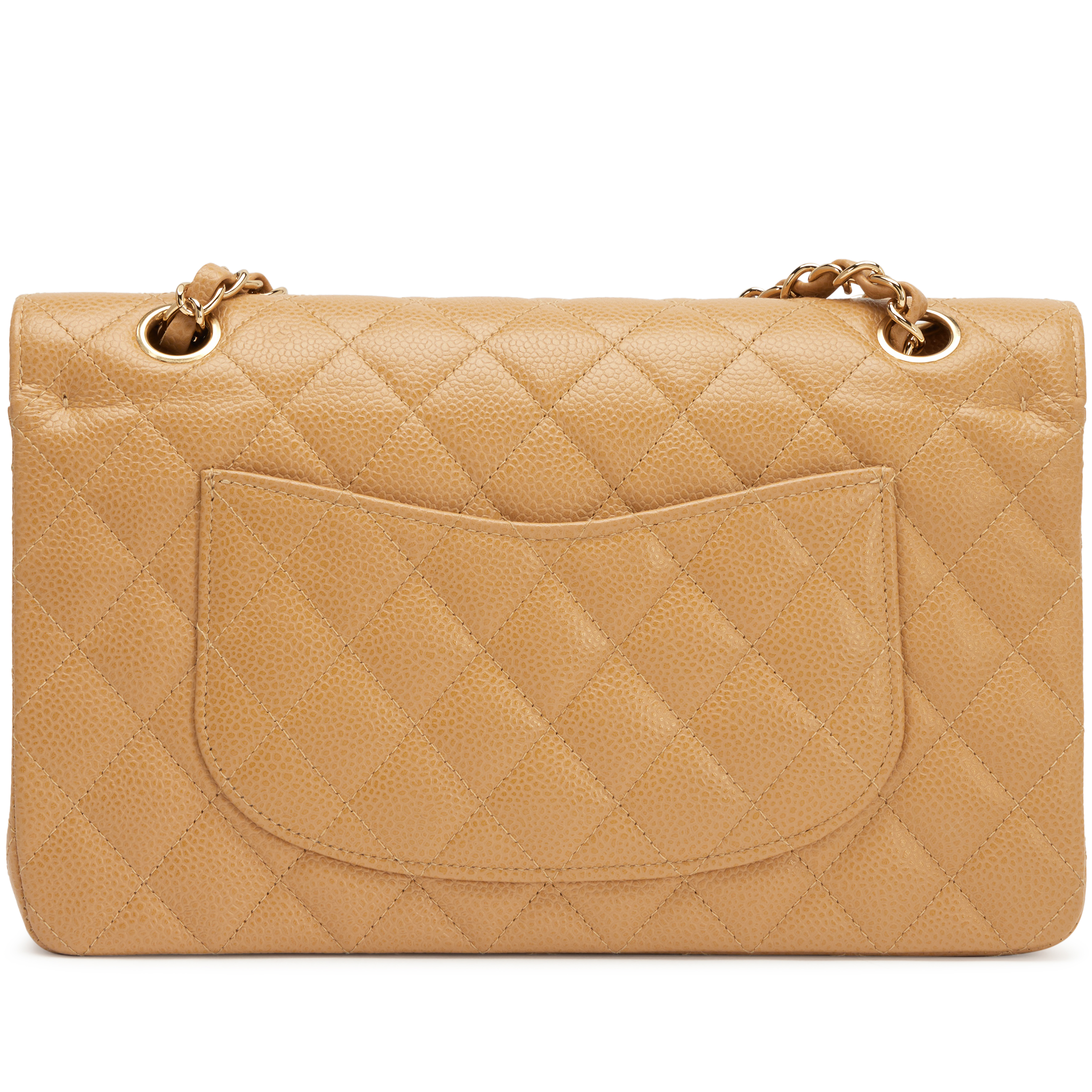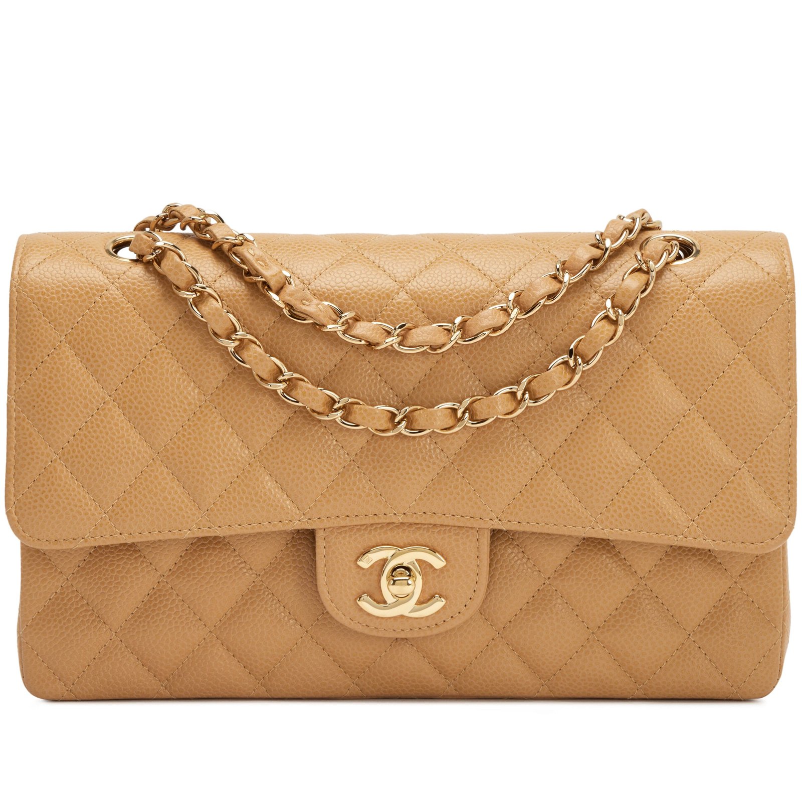 Chanel Camel Beige Quilted Caviar Medium Classic Double Flap Bag Gold Hardware, 2003-2004