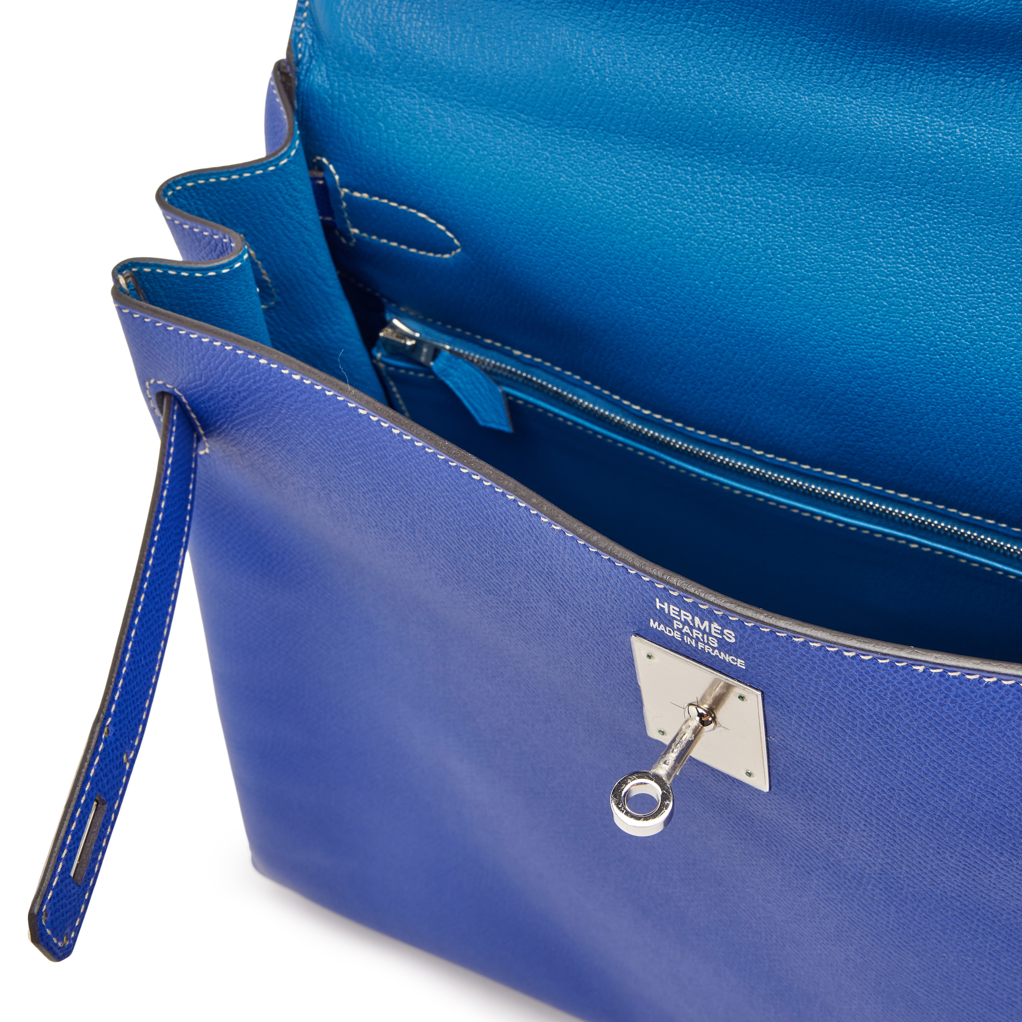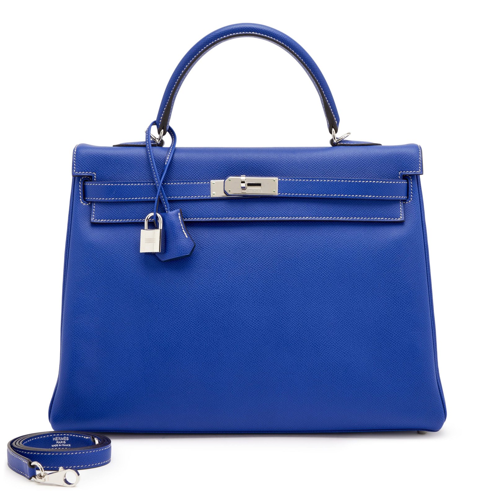 Hermès Candy Bleu Electrique and Mykonos Epsom Retourne Kelly 35 Palladium Hardware, 2011