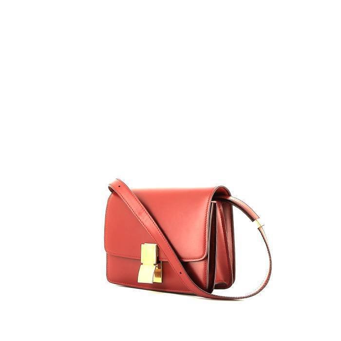 Chic mini Celine Classic Box shoulder bag in red box leather, hardware in gilt metal, one convertible strap in red leather allowing the bag to be worn on the shoulder or accross the body.