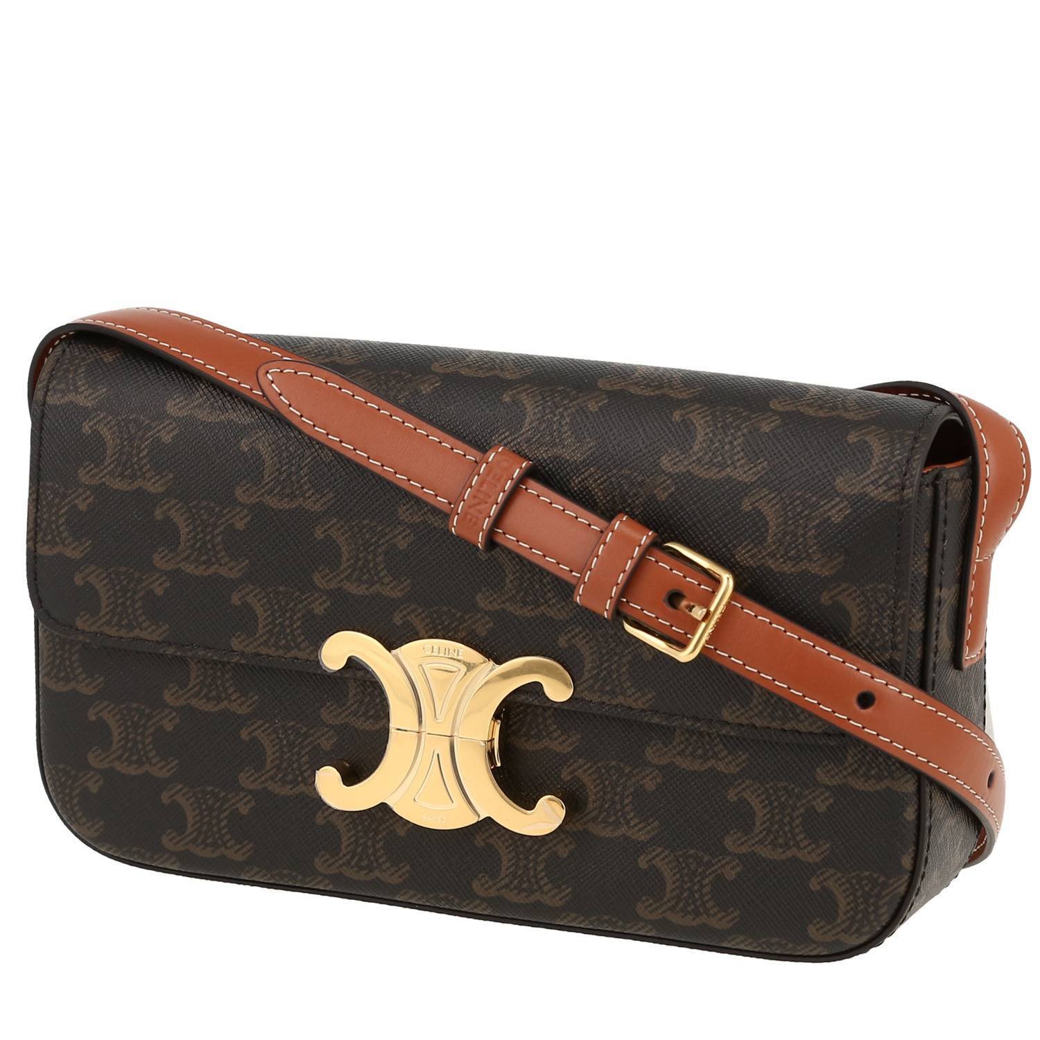 Magnificent Celine Claude handbag “Triomphe” canvas, hardware in gilt metal, one adjustable strap in brown leather allowing the bag to be worn in the hand or on the shoulder.