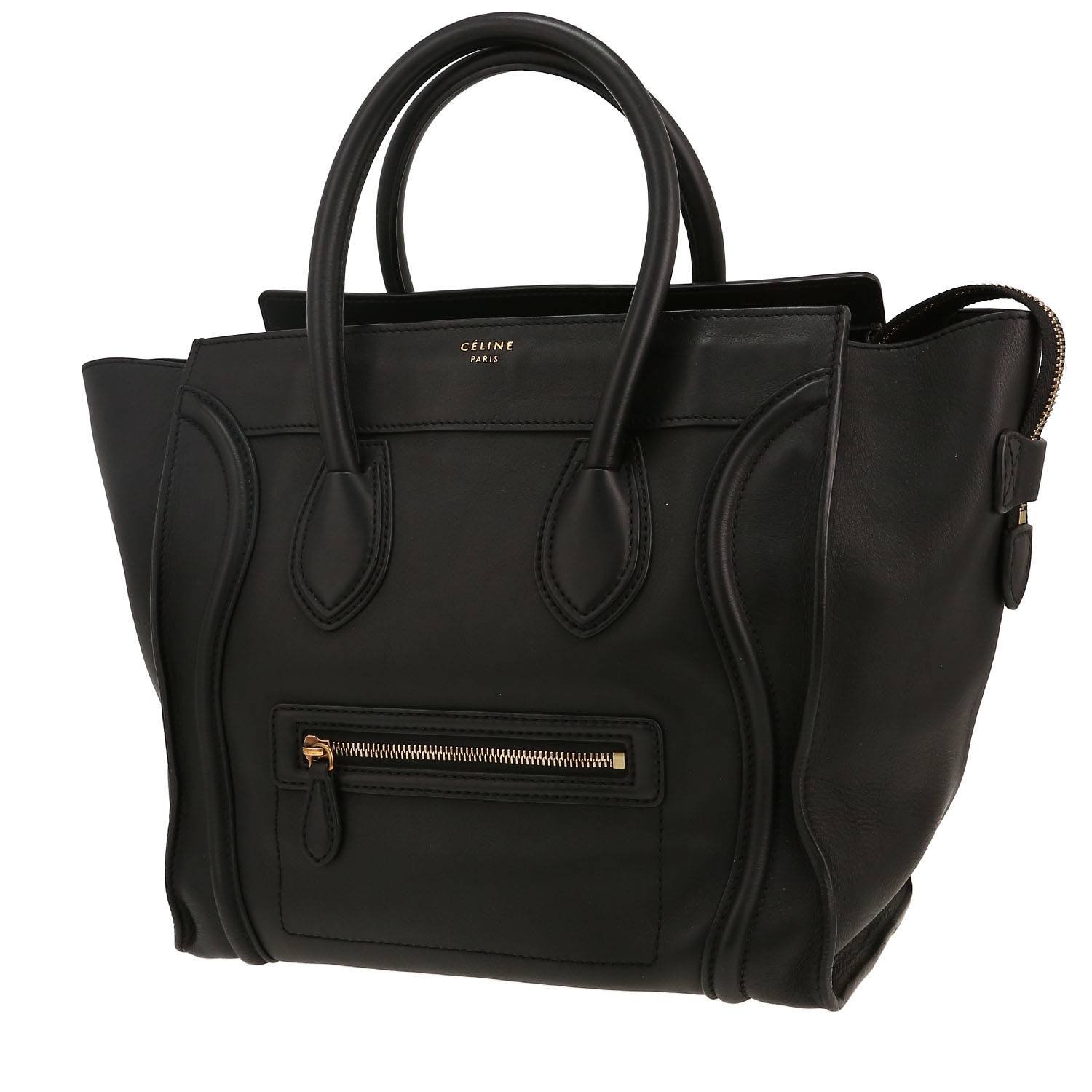Unavoidable medium model Celine Luggage handbag in black leather, hardware in gilt metal, double handle in black leather allowing the bag to be worn in the hand.