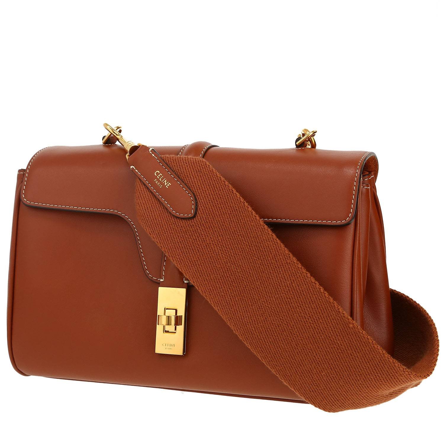 Wonderful Celine Soft Teen shoulder bag in brown leather, hardware in gilt metal, brown canvas removable strap to be worn accross the body allowing the bag to be worn in the hand or on the shoulder or accross the body.