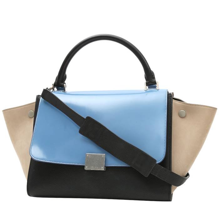 Celine Trapeze small model handbag in tricolor, blue, black and beige leather