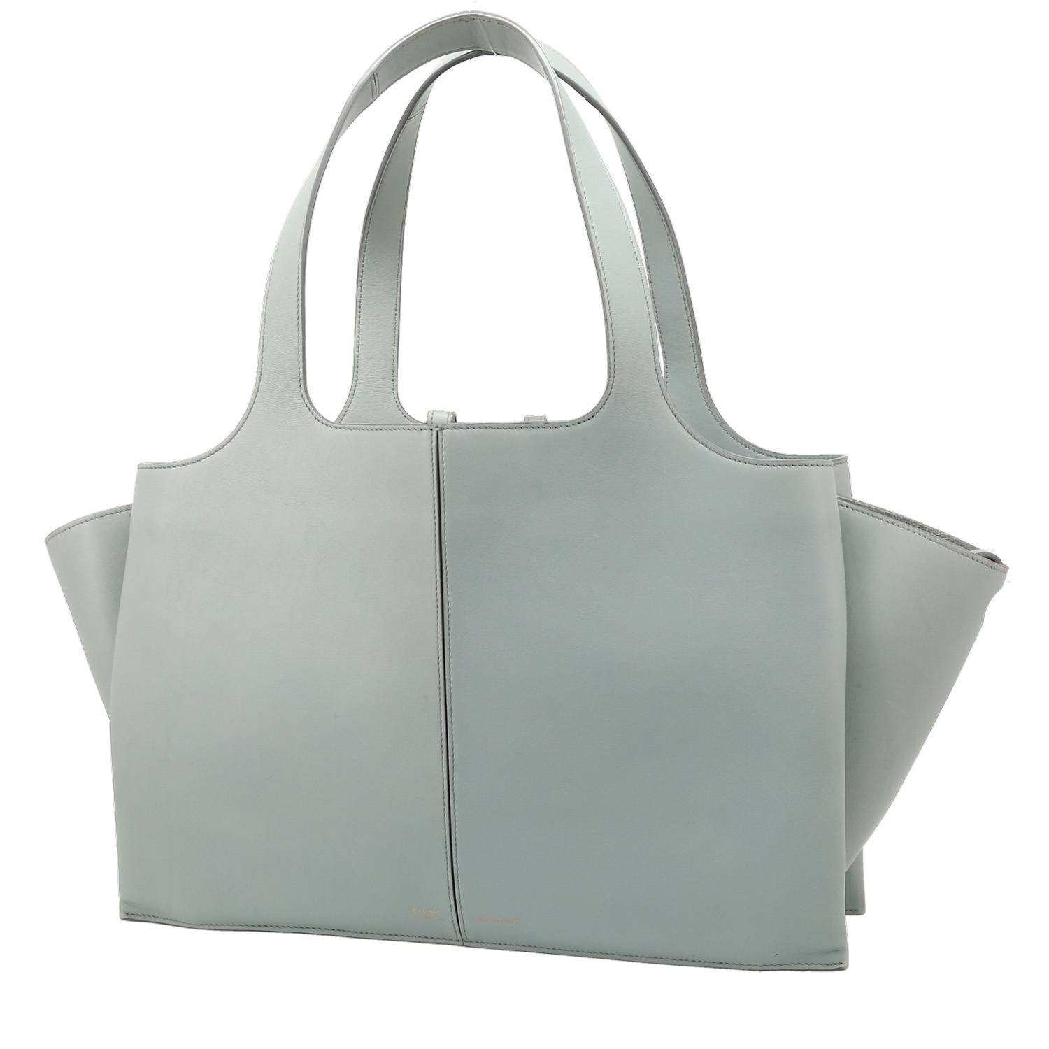 Wonderful Celine Tri-Fold shopping bag in blue leather, hardware in gilt metal, double strap in blue leather allowing the bag to be worn in the hand or on the shoulder.