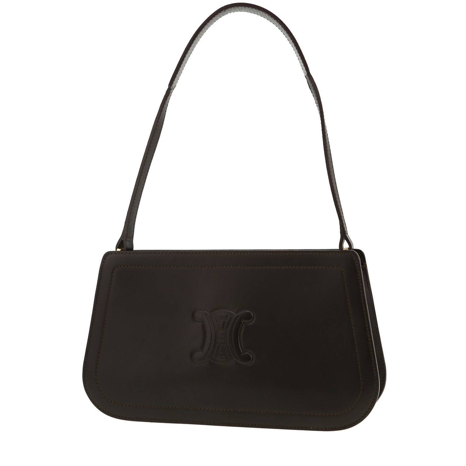 Wonderful Celine Triomphe handbag in brown box leather, hardware in gilt metal, one strap in brown leather allowing the bag to be worn in the hand or on the shoulder.