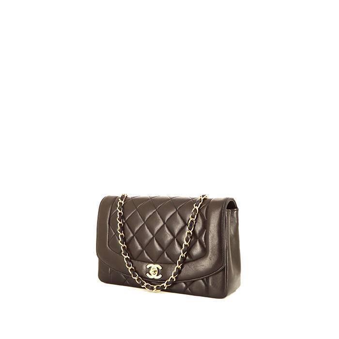 Chic Chanel Diana shoulder bag in brown quilted leather, hardware in gilt metal, one adjustable shoulder strap in gilt metal interwoven with brown leather allowing the bag to be worn on the shoulder or accross the body.