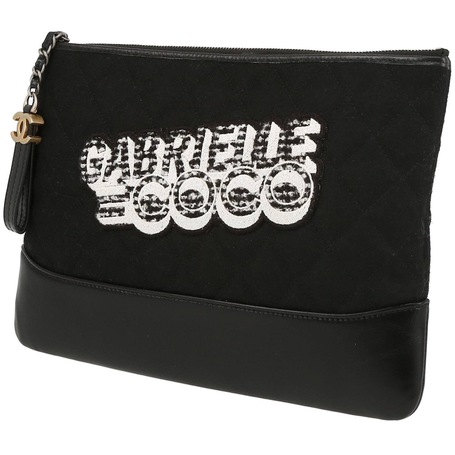 Classic Chanel Editions Limitées pouch in black quilted canvas, hardware in silver metal allowing the bag to be worn in the hand.