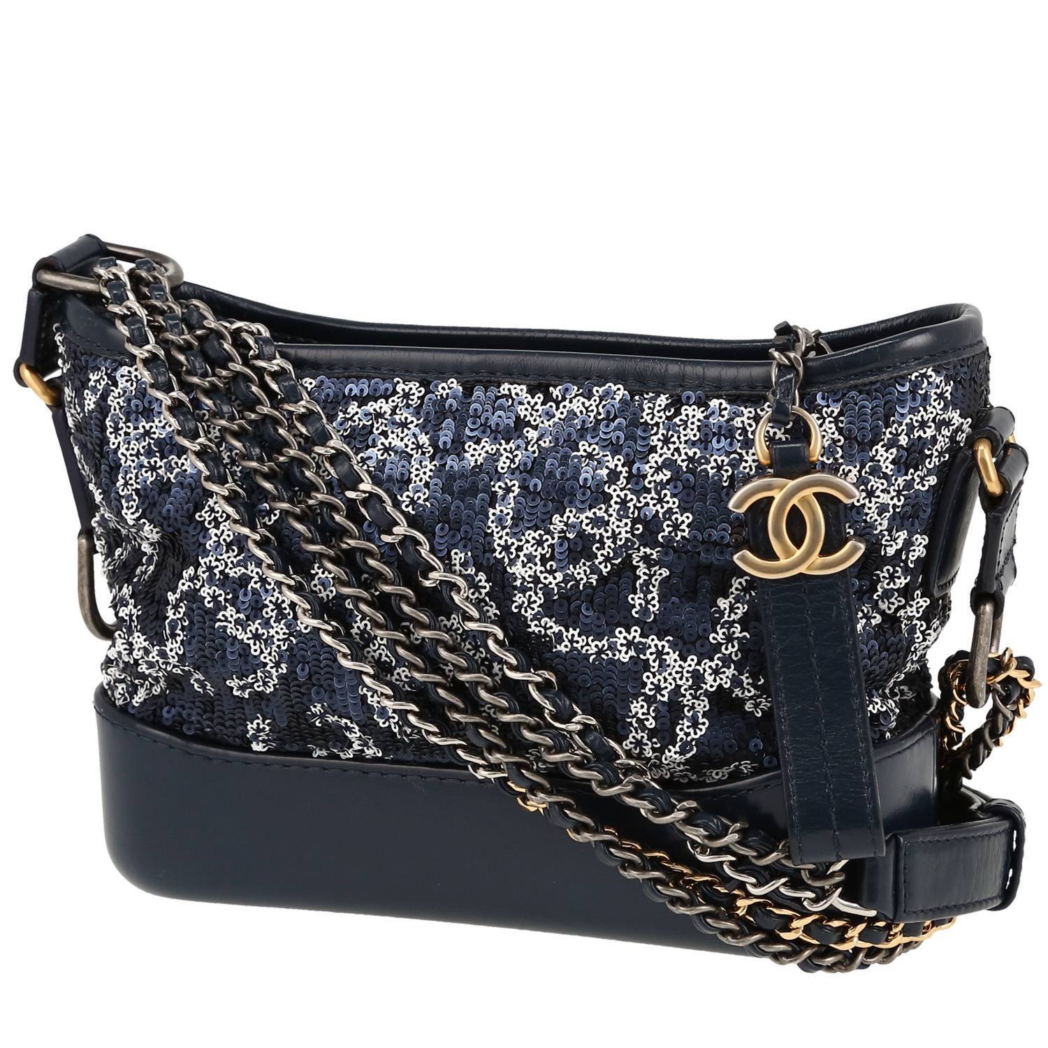 Chanel Gabrielle small model shoulder bag in navy blue quilted leather and paillette