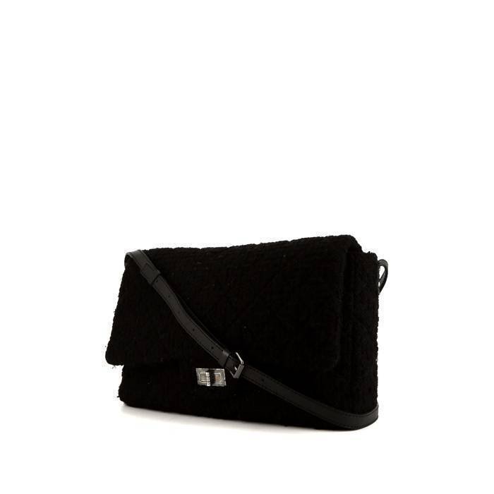 Nice and original Chanel Messenger shoulder bag in black jersey, hardware in silver metal, one shoulder strap in black leather allowing the bag to be worn on the shoulder or accross the body.