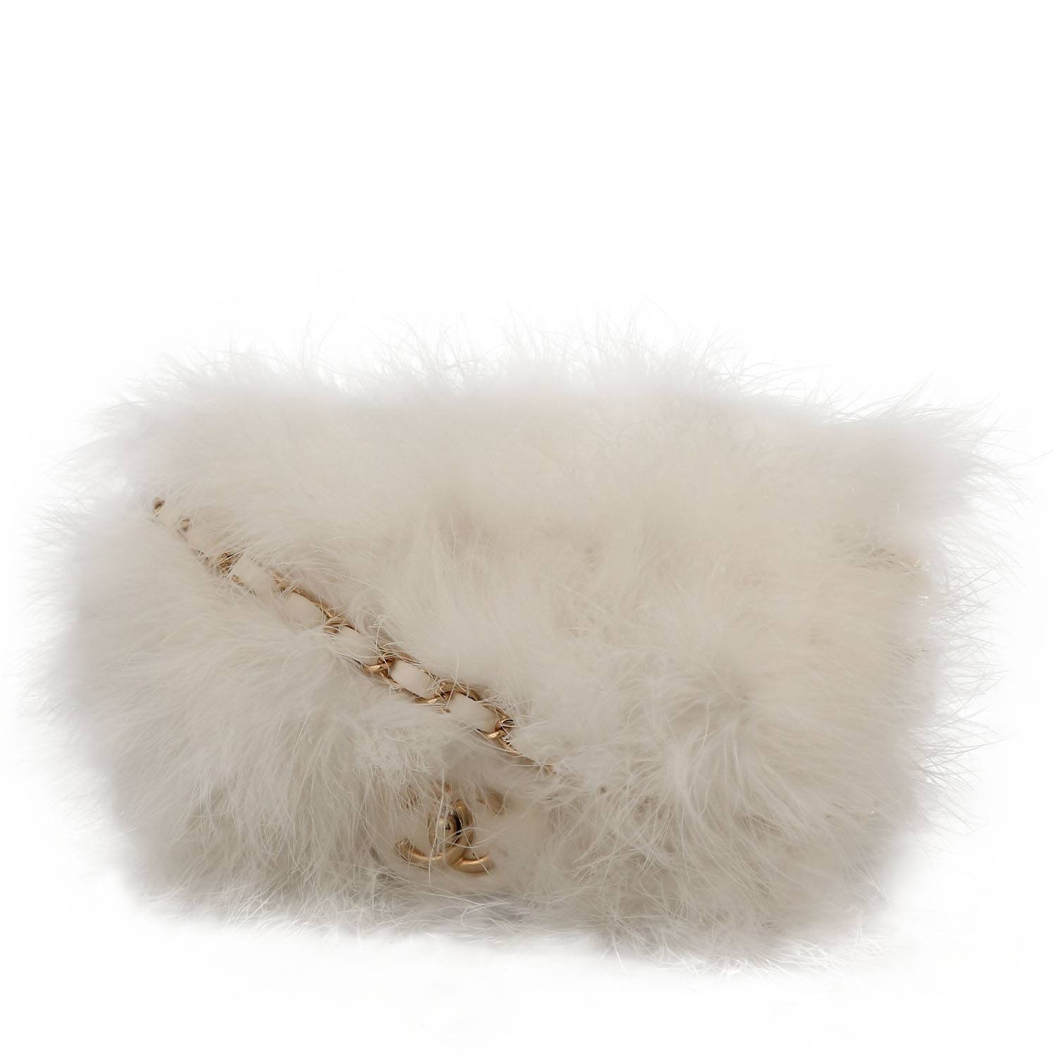 Lovely Chanel Mini Timeless shoulder bag in white quilted leather, hardware in gilt metal, one chain strap in gilt metal interwoven with white leather allowing the bag to be worn on the shoulder or accross the body.