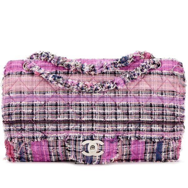 Chanel Pink and Purple Tweed Fringe Classic Jumbo Double Flap Silver Hardware, 2008