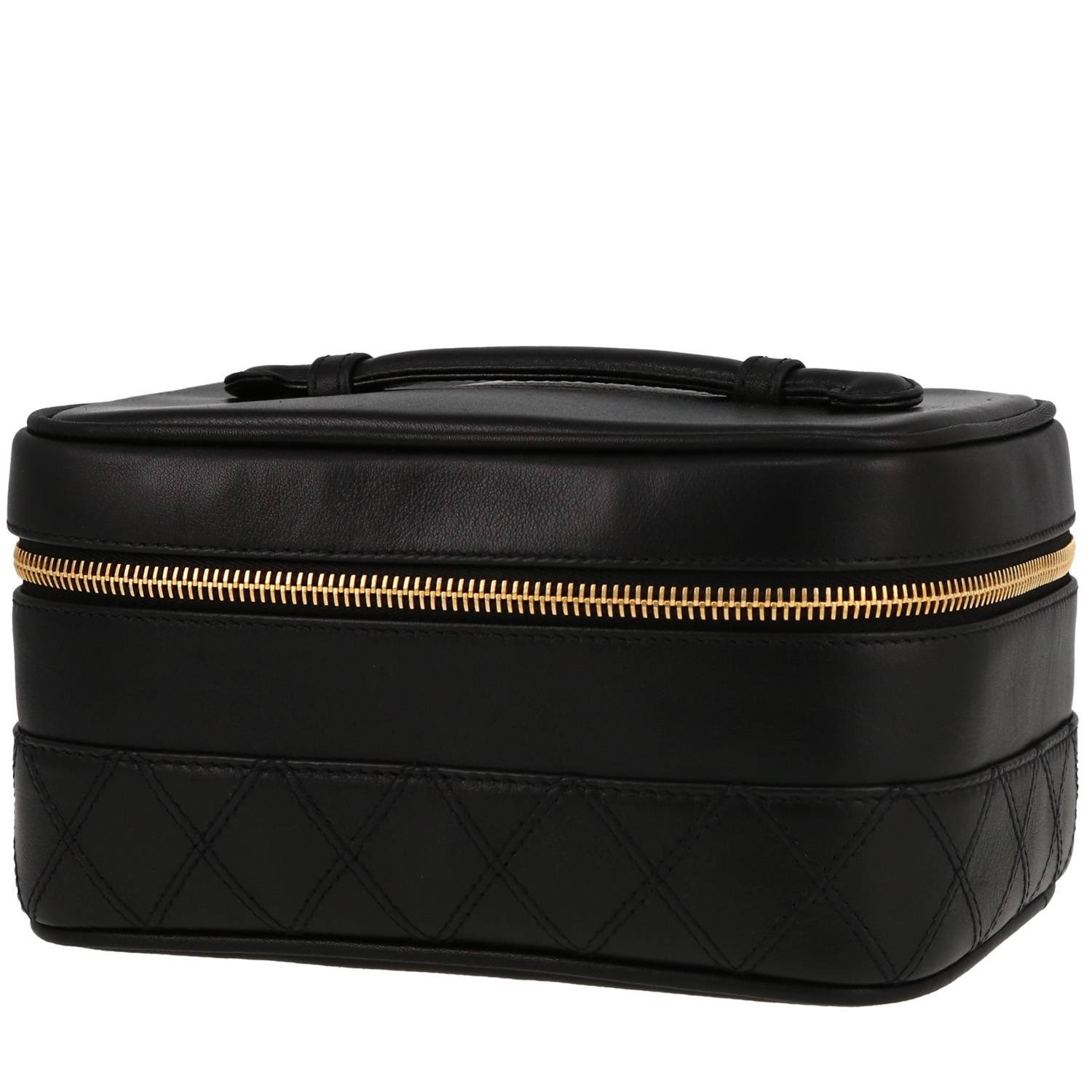 Elegant Chanel Vanity vanity case in black leather, hardware in gilt metal, top handle in black leather allowing the bag to be worn in the hand.