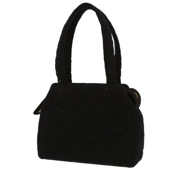 Elegant Chanel Vintage handbag in black jersey canvas, hardware in gilt metal, double strap in black jersey canvas allowing the bag to be worn in the hand or on the shoulder.