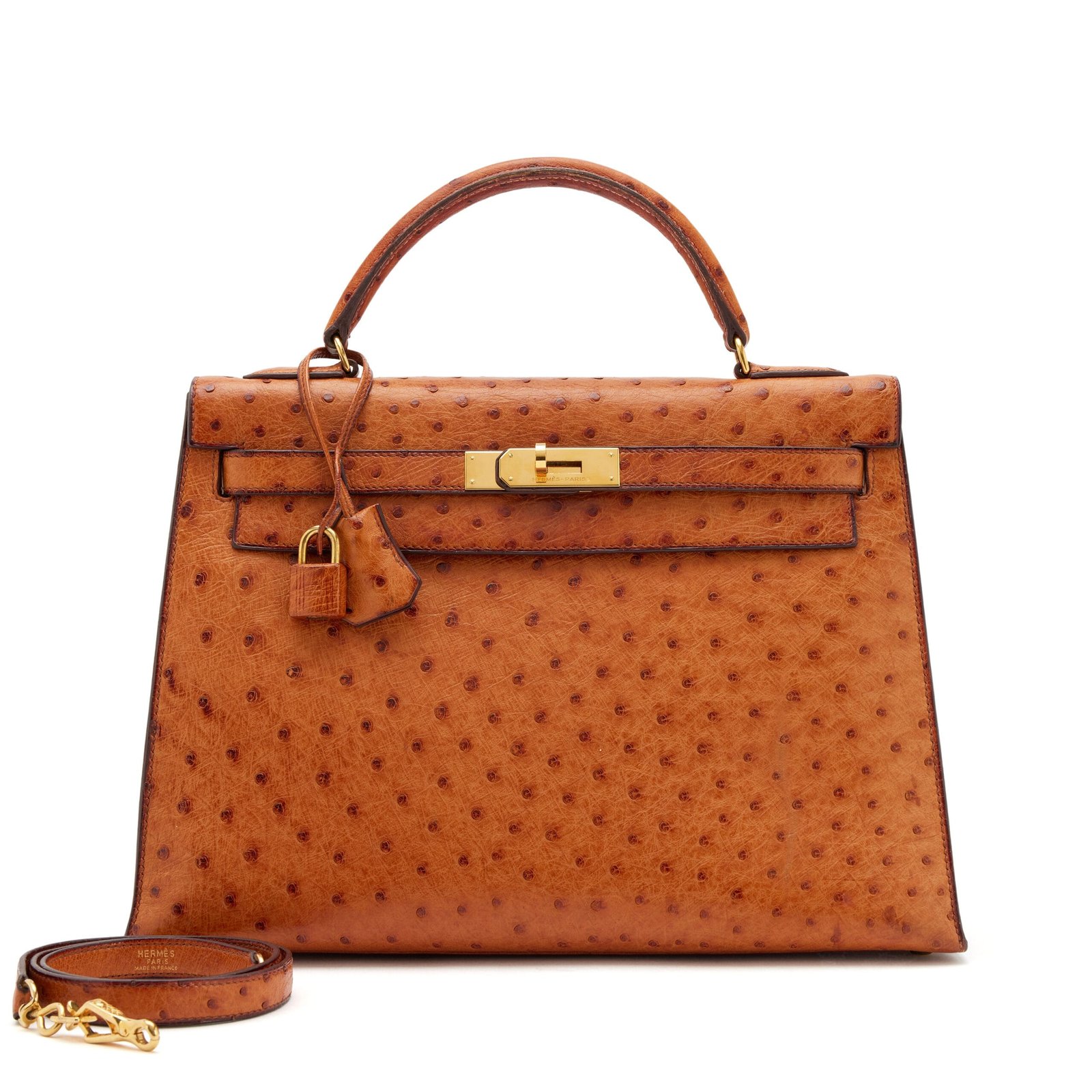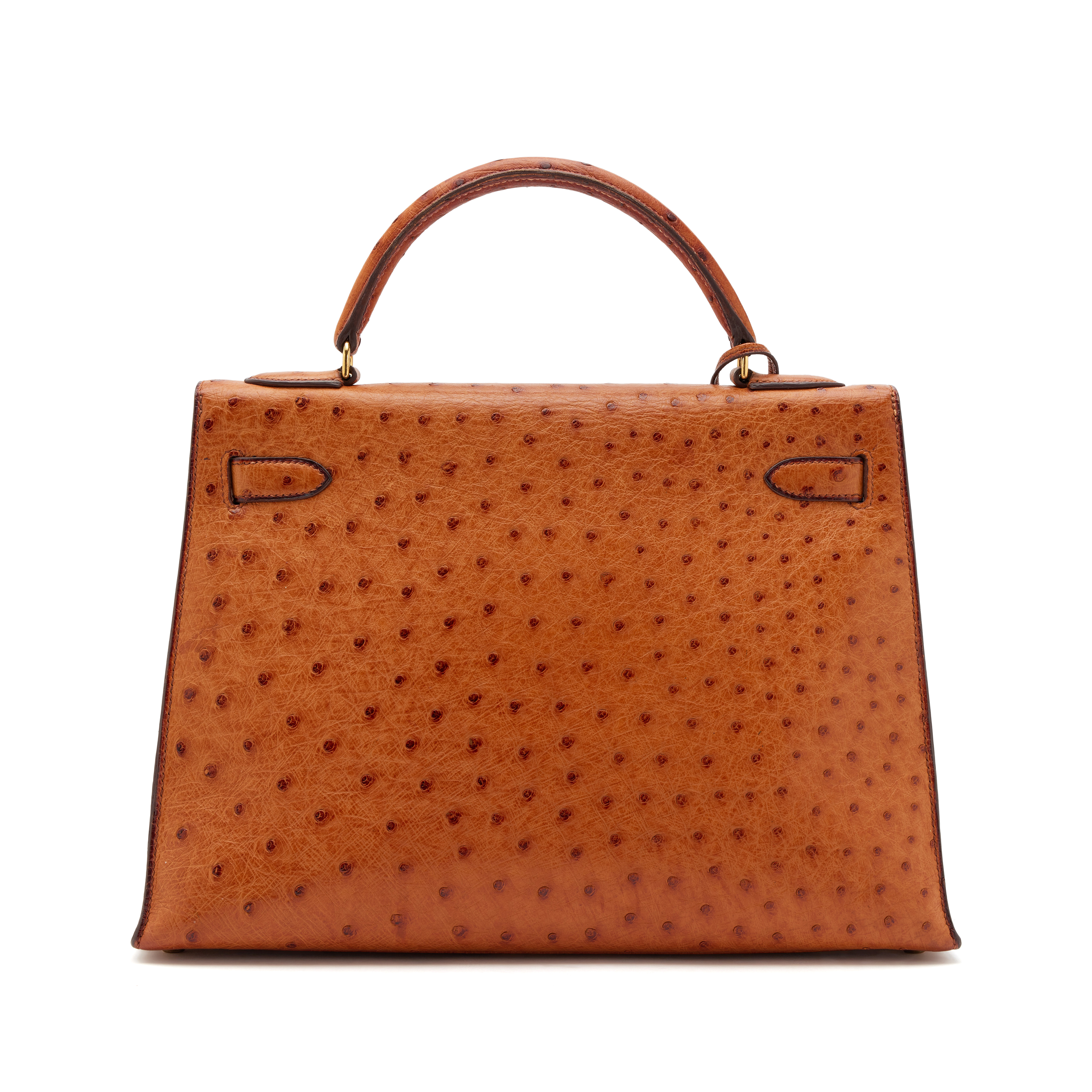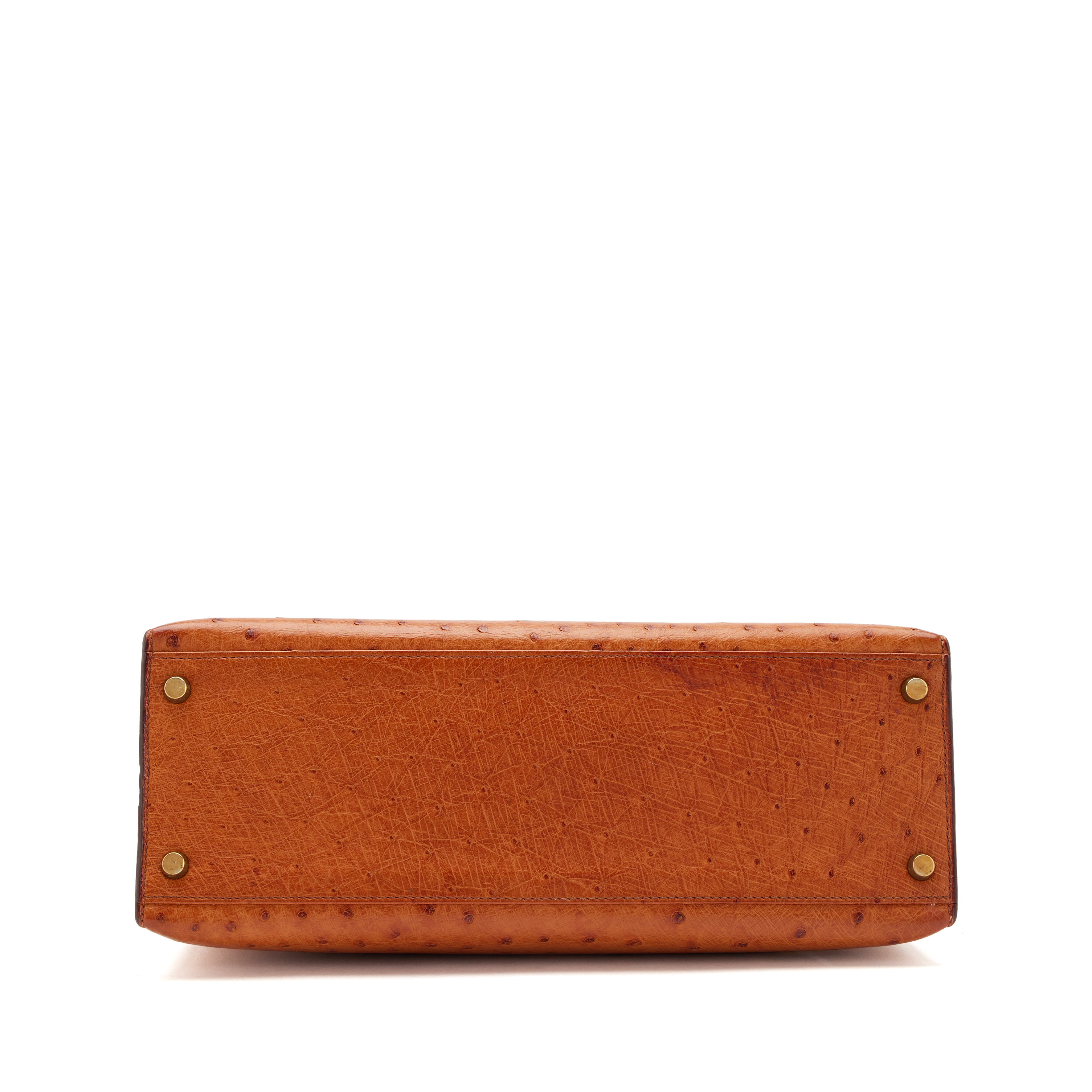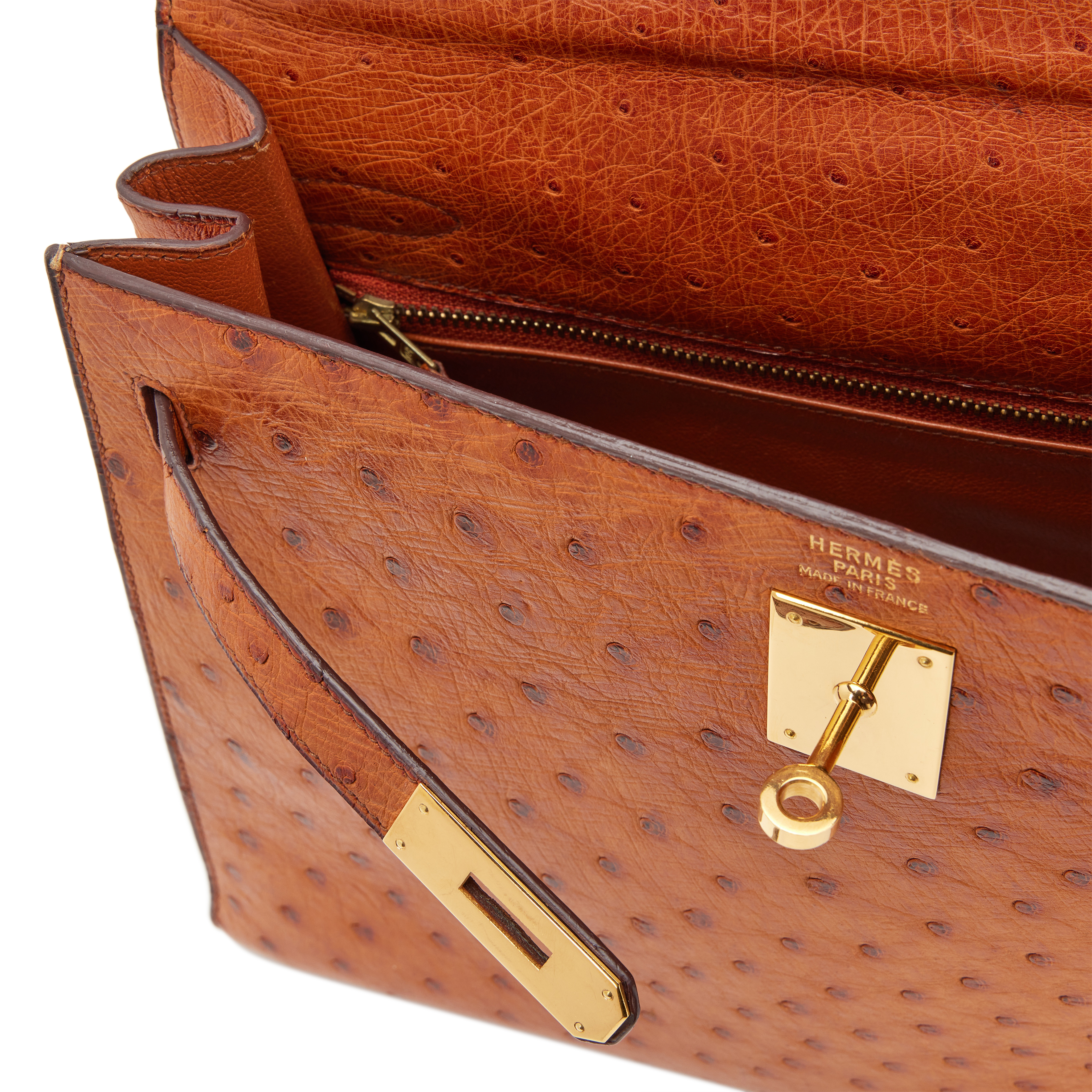 Hermès Cognac Ostrich Sellier Kelly 32 Gold Hardware, 1990