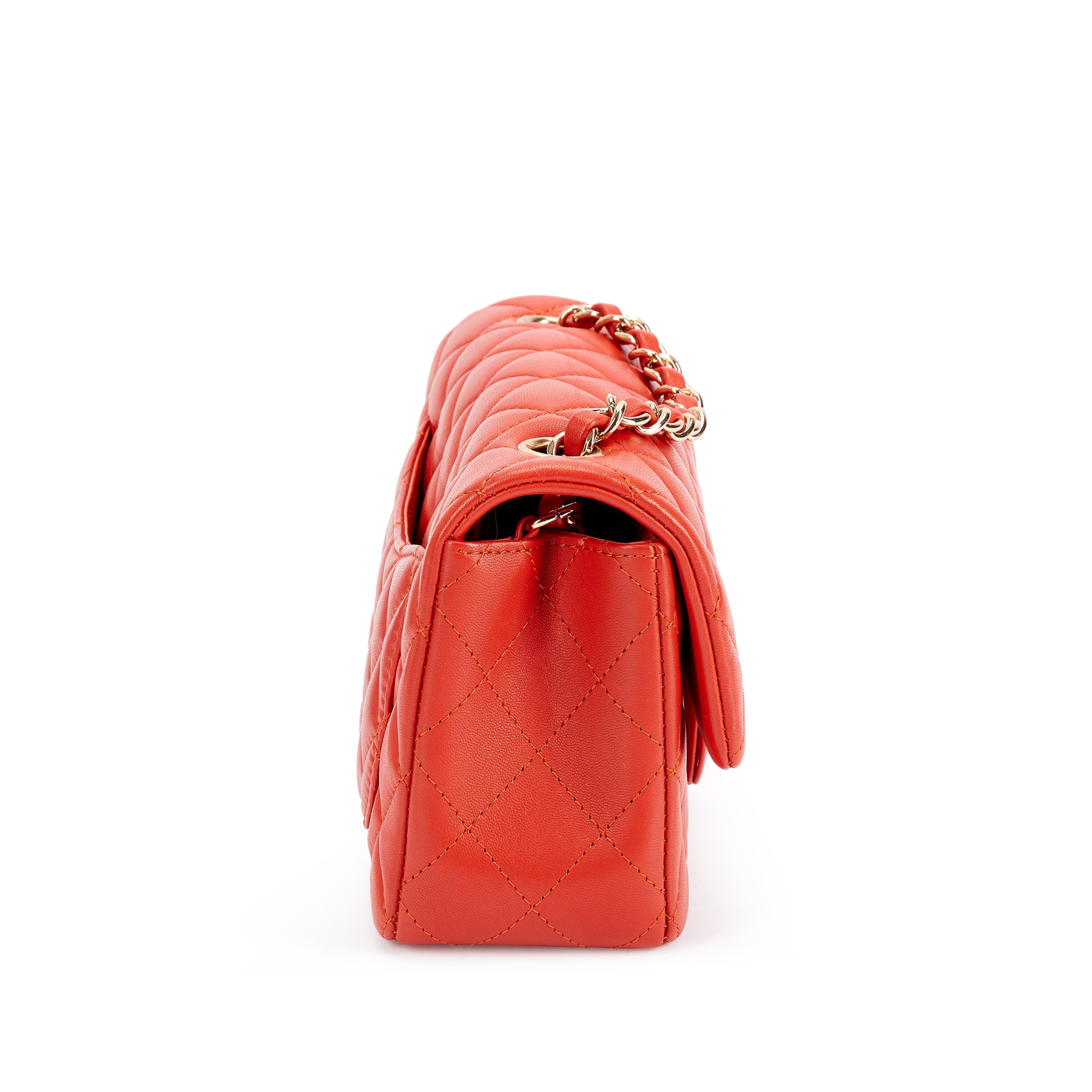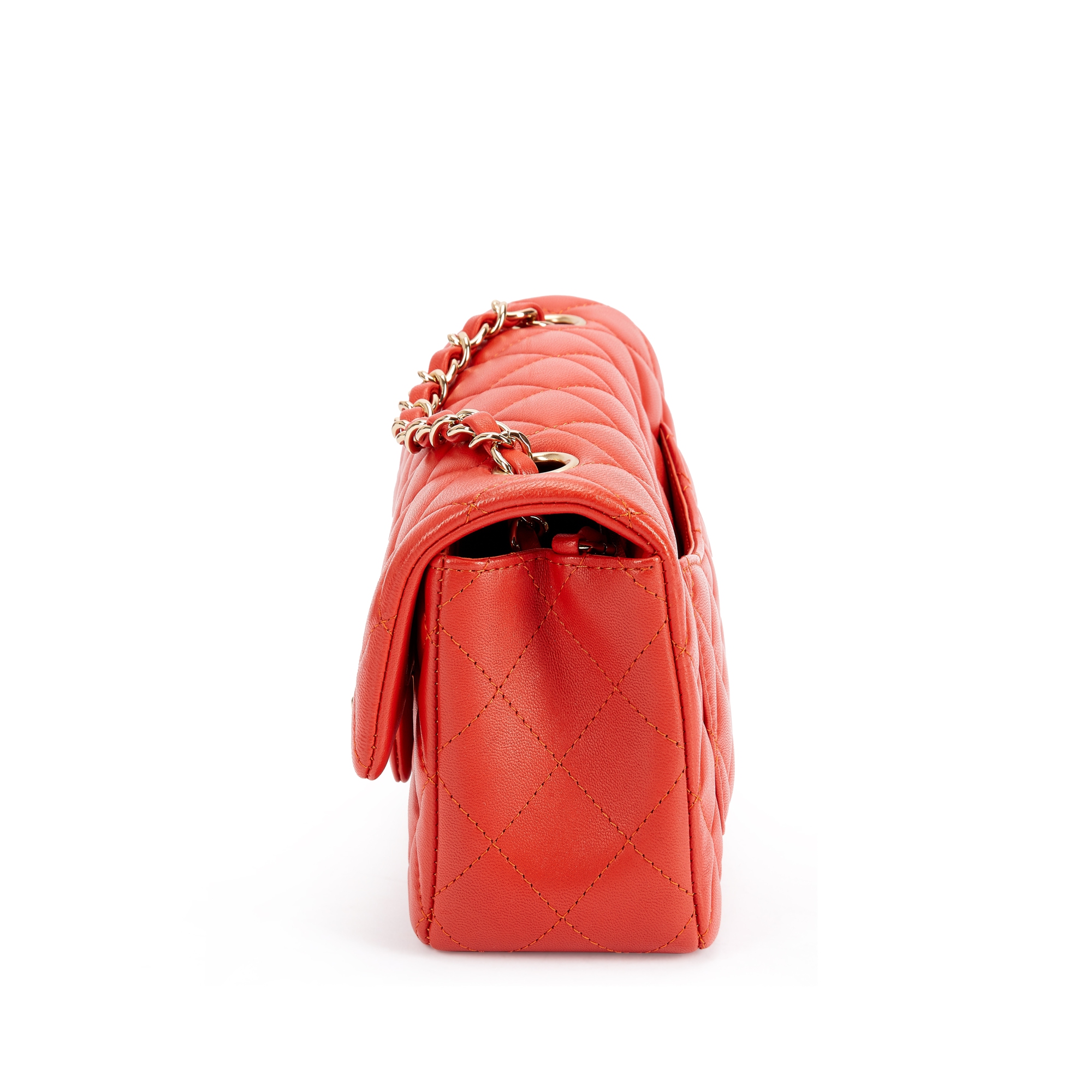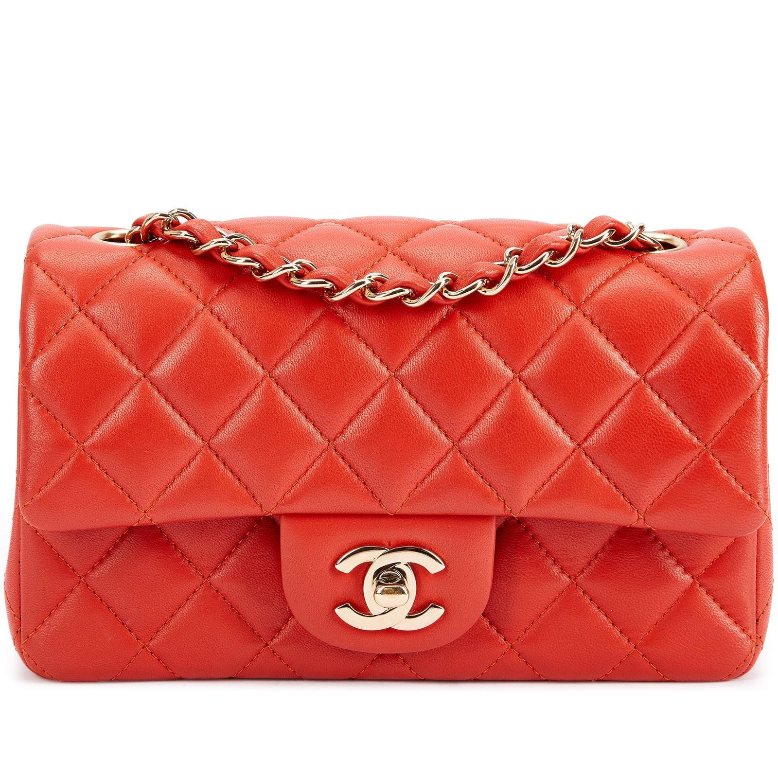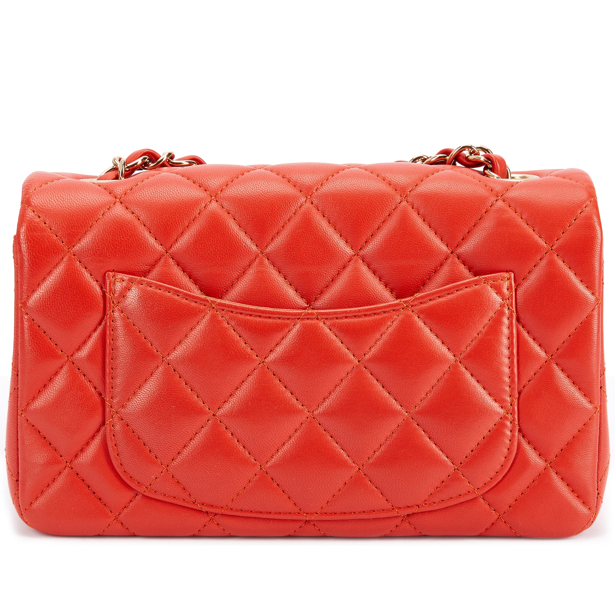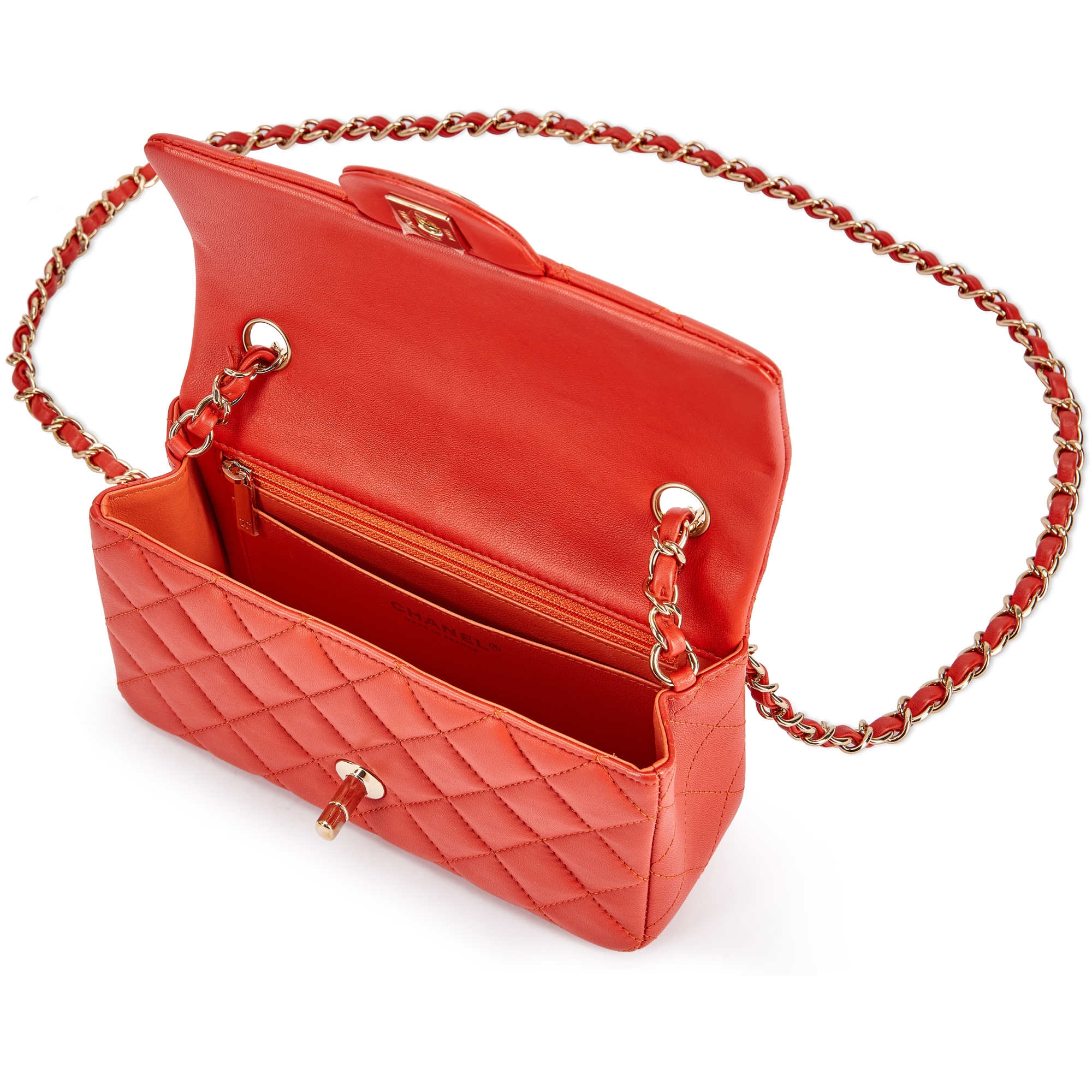 Chanel Coral Quilted Lambskin Mini Flap Bag Pale Gold Hardware, 2017-18The interior is lined with tonal leather materialThis item is final sale and not eligible for return