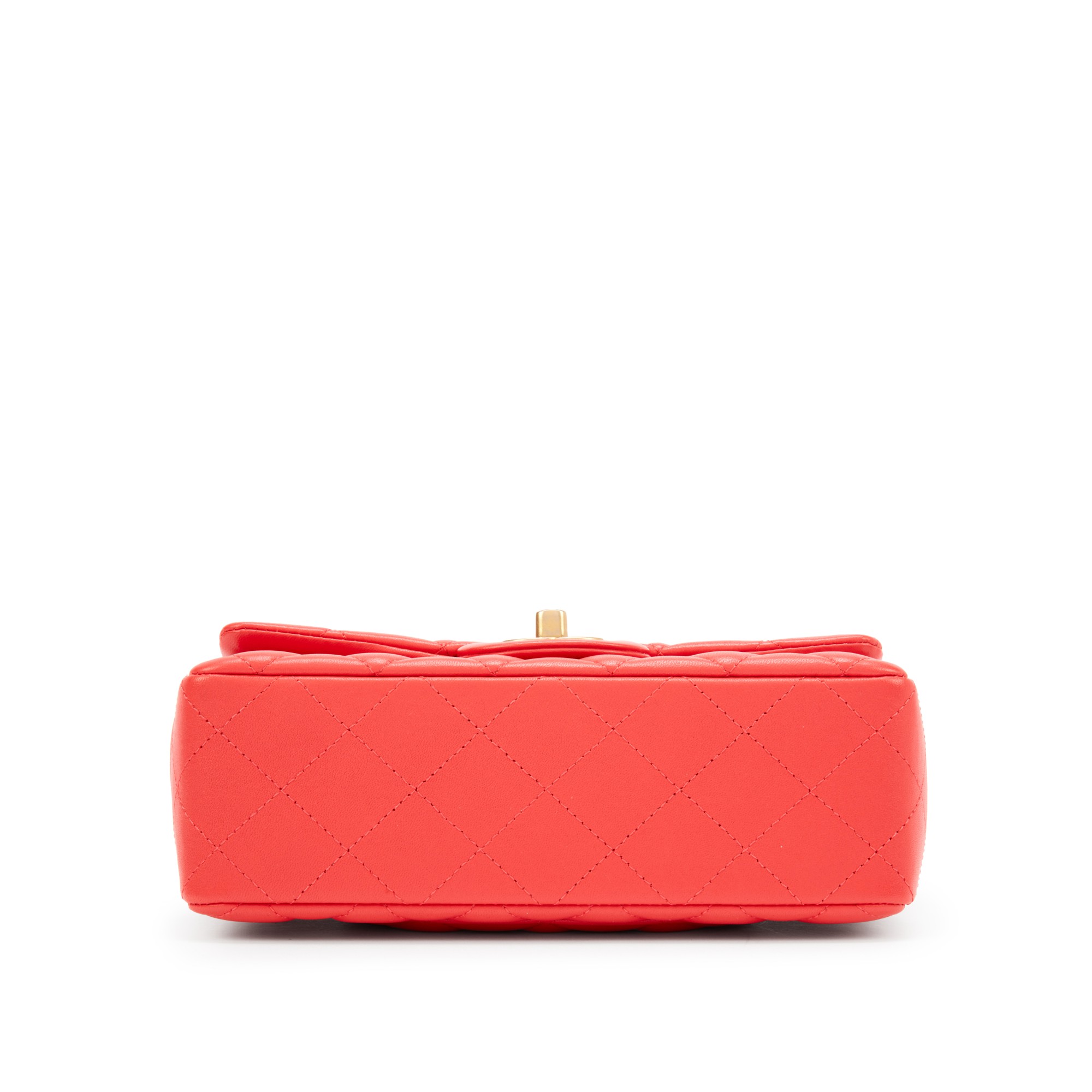 Chanel Coral Quilted Lambskin Mini Rectangular Classic Single Flap Bag Gold Hardware, 2019The interior is lined in tonal calfskin leatherThis piece was featured during the 2019 Spring/Summer Act II collectionIncludes original tags, authenticity card, felt protector, dustbag, large care card, and boxThis item is final sale and not eligible for return