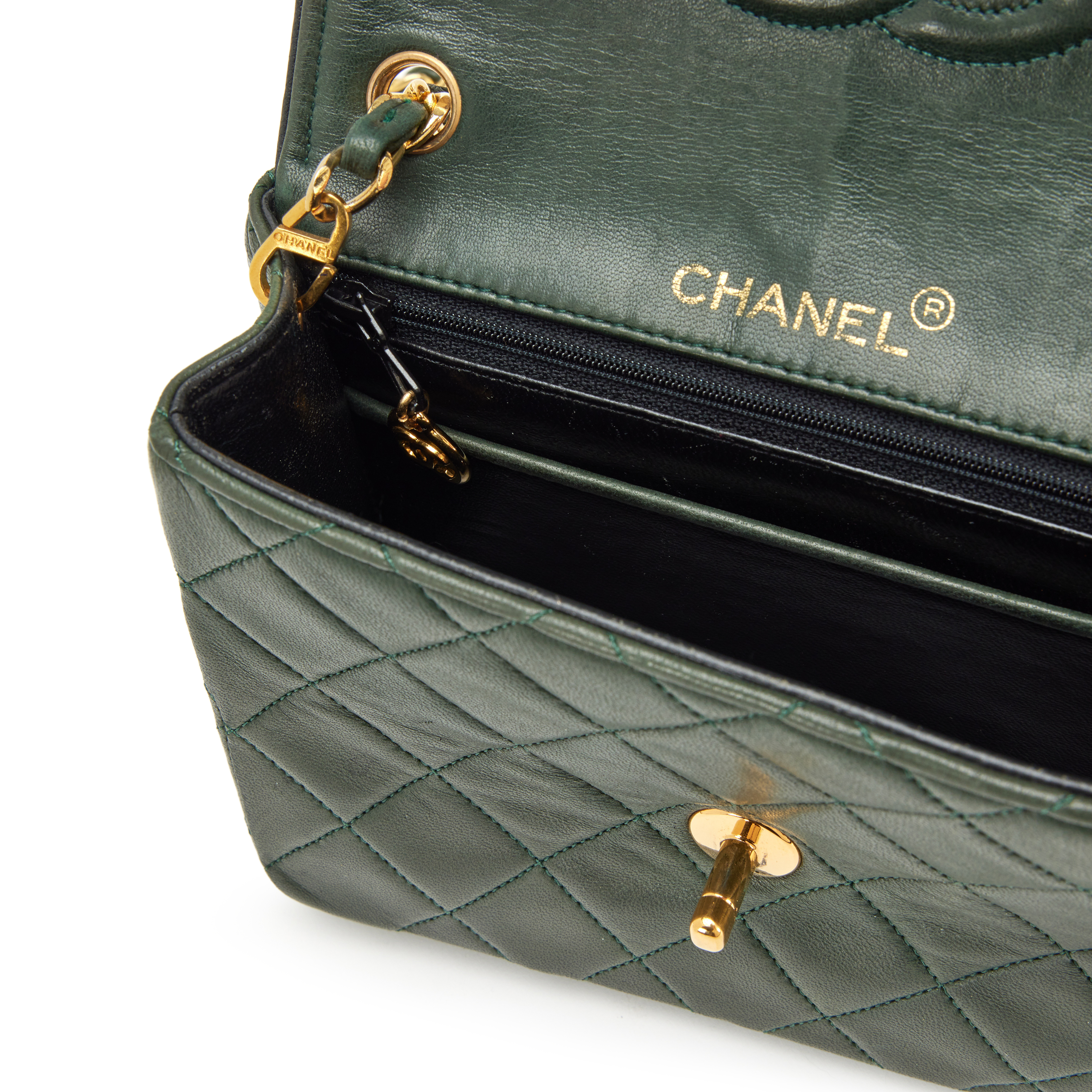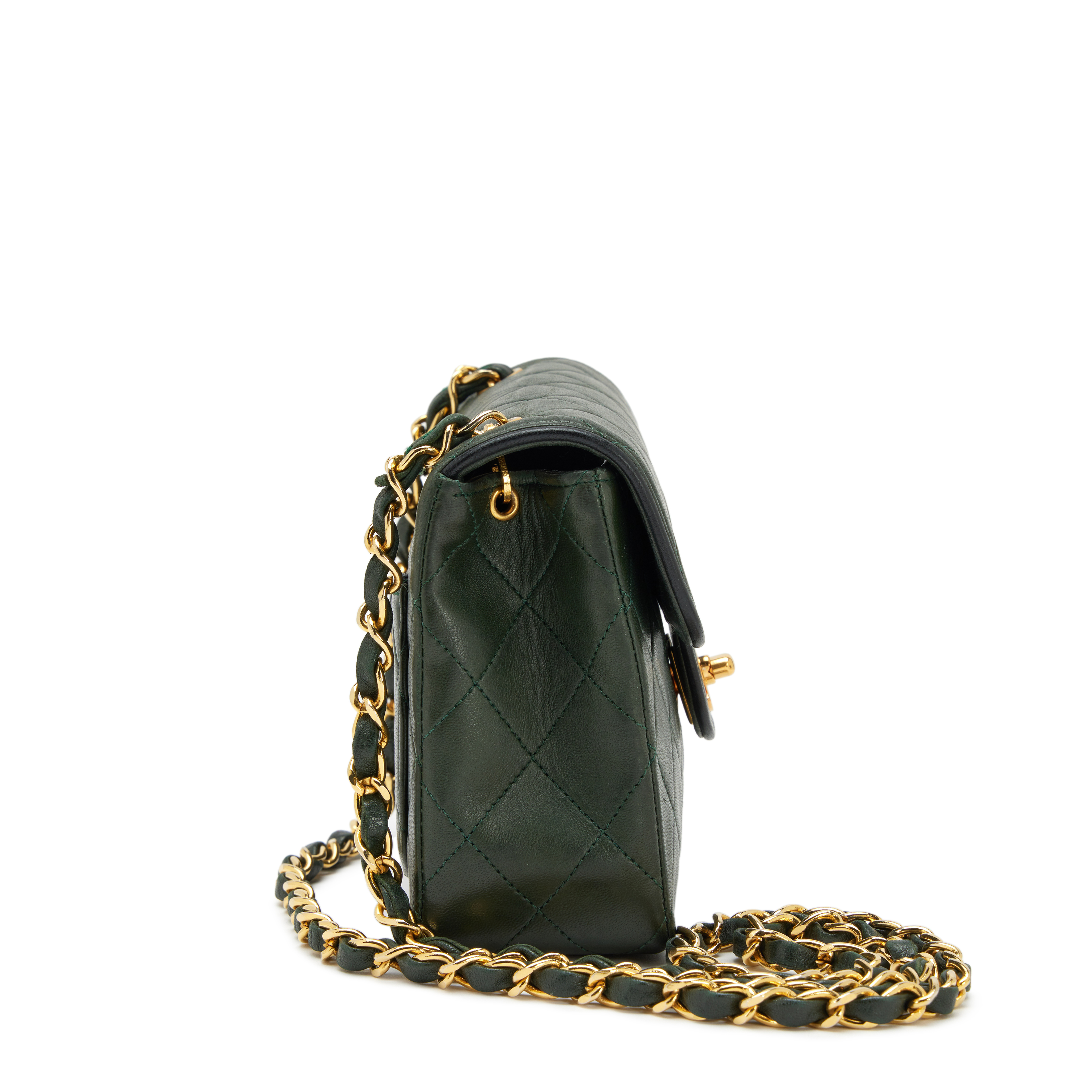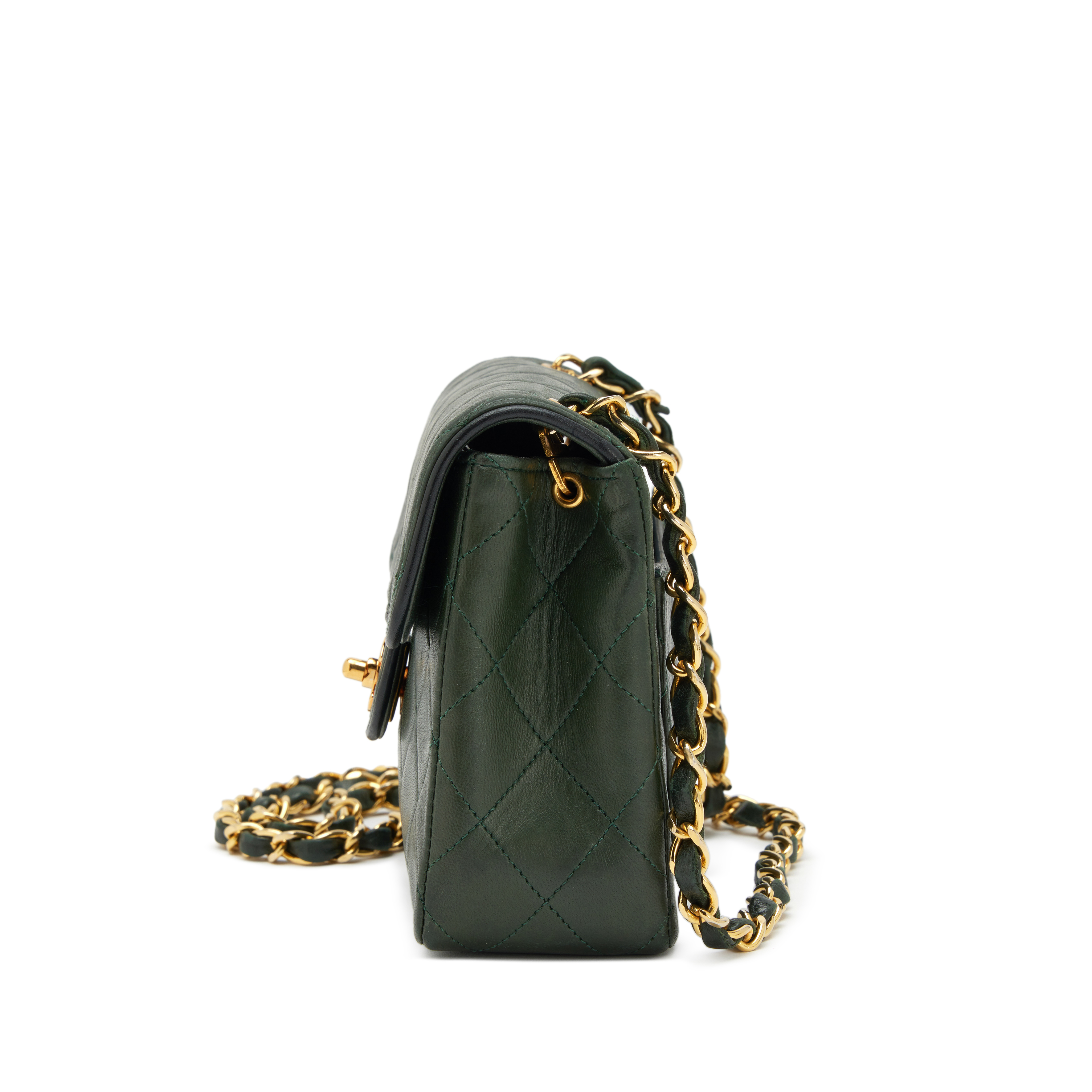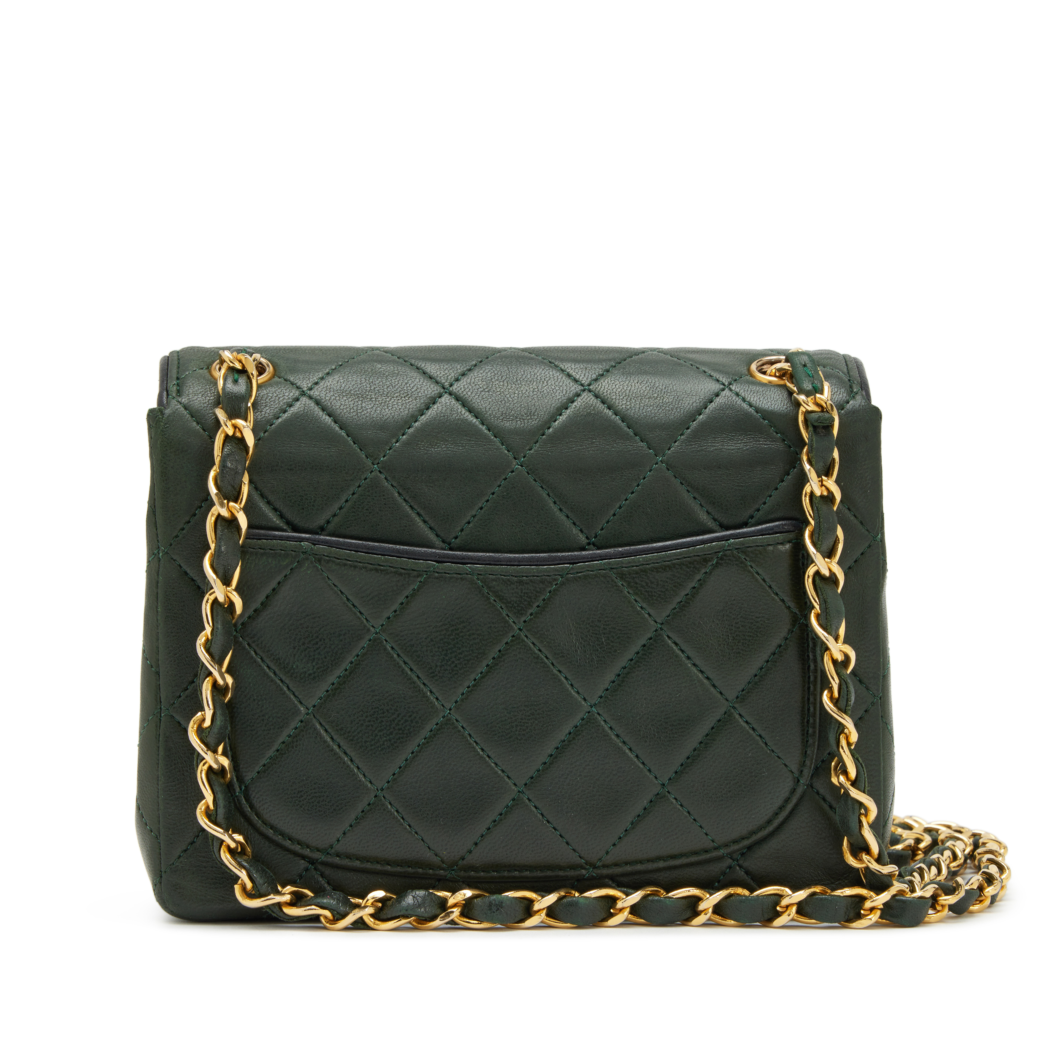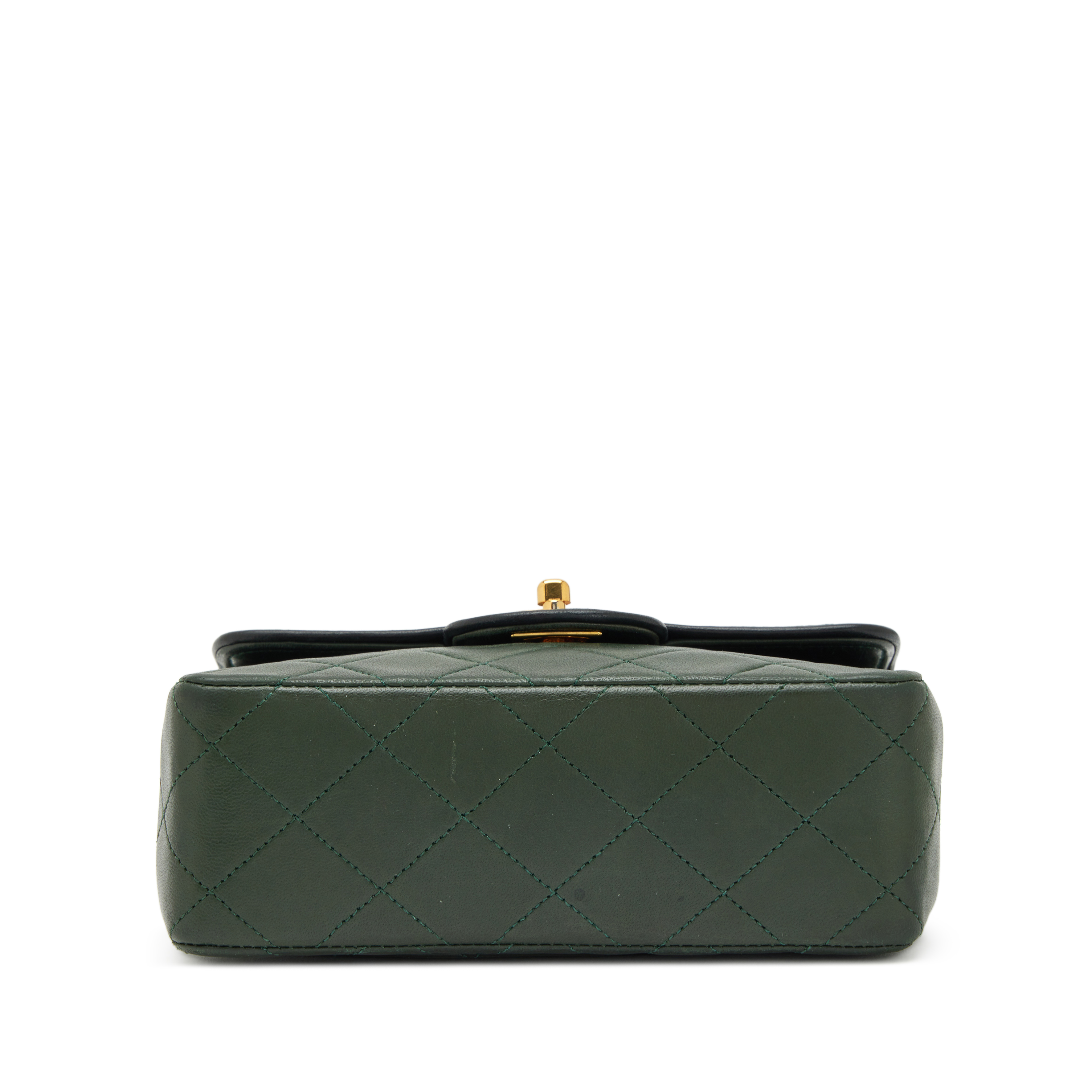 Chanel Dark Green and Black Trim Quilted Lambskin Mini Square Classic Flap Bag Gold Hardware, 1989-1991The interior is lined in a tonal leatherIncludes authenticity card, dust bag, and boxThis item is final sale and not eligible for return