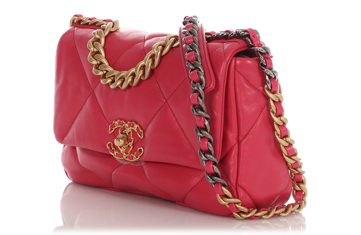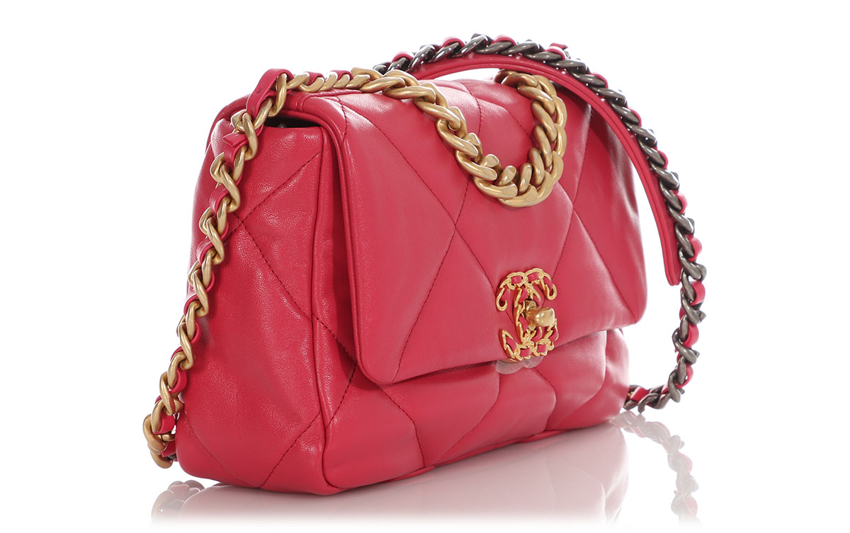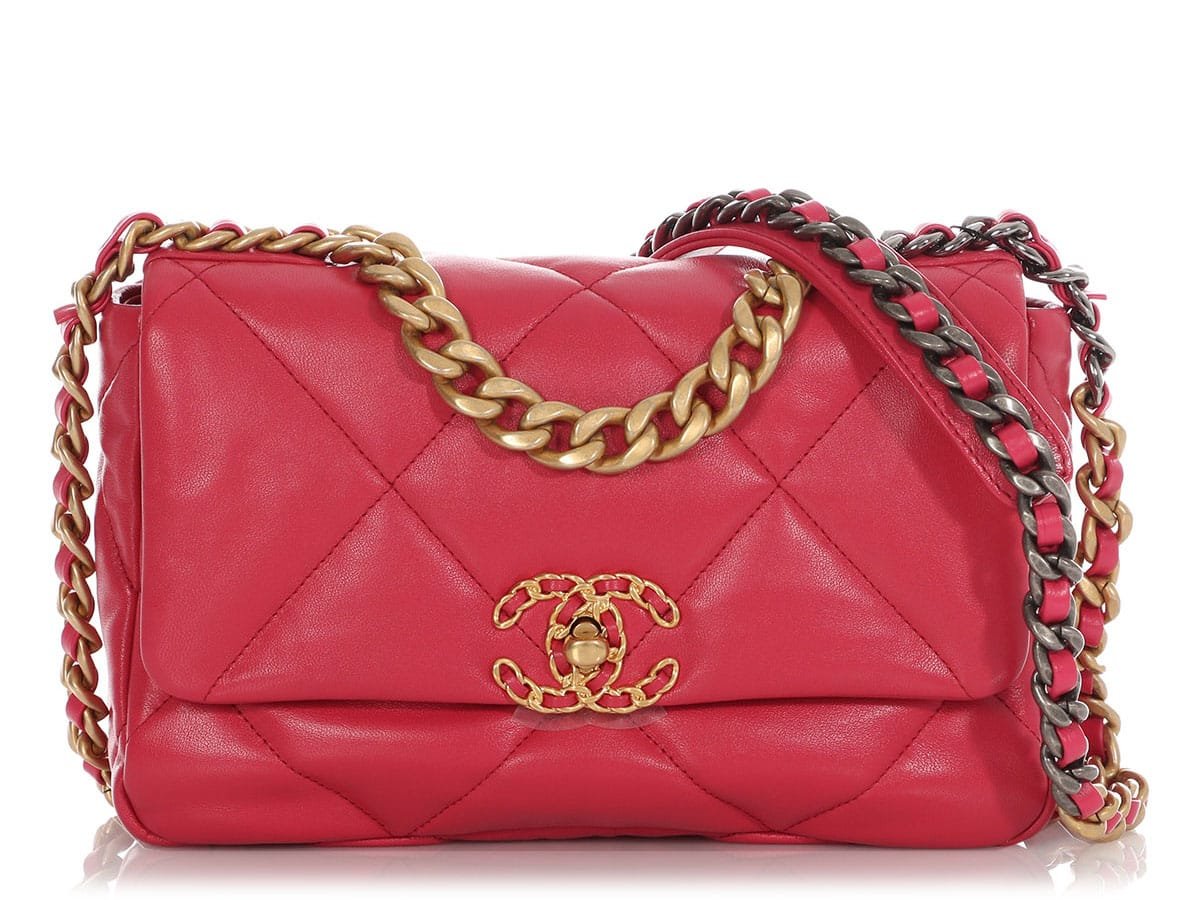 Chanel Dark Pink Quilted Lambskin Medium 19 Flap Bag Mixed Hardware, 2021