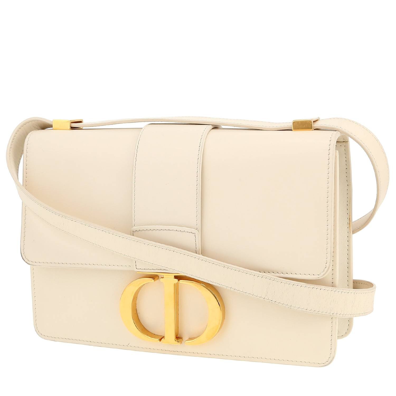 Lovely Dior 30 Montaigne shoulder bag in white smooth leather, hardware in gilt metal, one convertible handle in white leather allowing the bag to be worn in the hand or on the shoulder or accross the body.