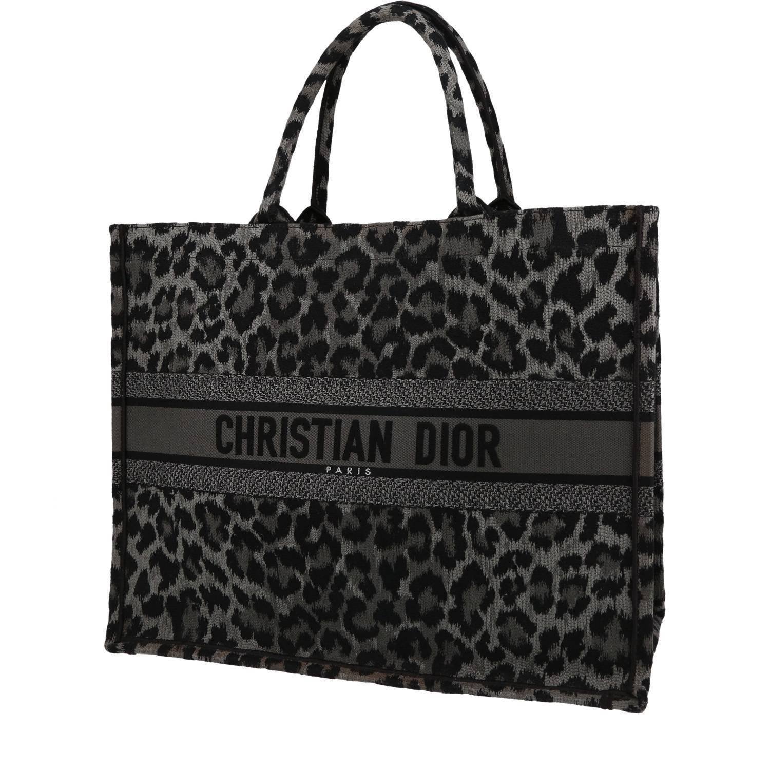 Magnificent Dior Book Tote shopping bag in grey canvas, double handle in grey canvas allowing the bag to be worn in the hand.