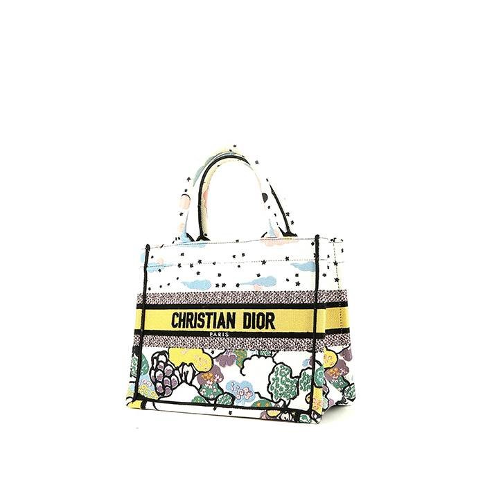 Lovely small model Dior Book Tote shopping bag in white canvas, double handle in white canvas allowing the bag to be worn in the hand.