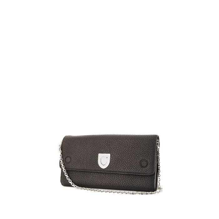 Very nice Dior Diorama Wallet on Chain handbag/clutch in black grained leather, hardware in silver metal, one removable chain strap in silver metal allowing the bag to be worn in the hand or on the shoulder or accross the body.