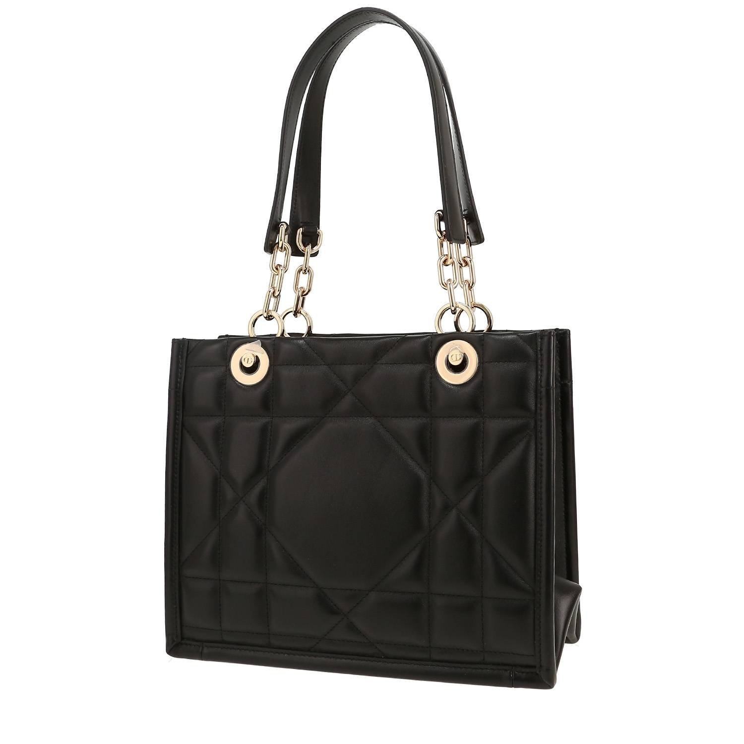 Wonderful Dior Essential shopping bag in black leather cannage, hardware in gilt metal, double strap in black leather allowing the bag to be worn in the hand or on the shoulder.