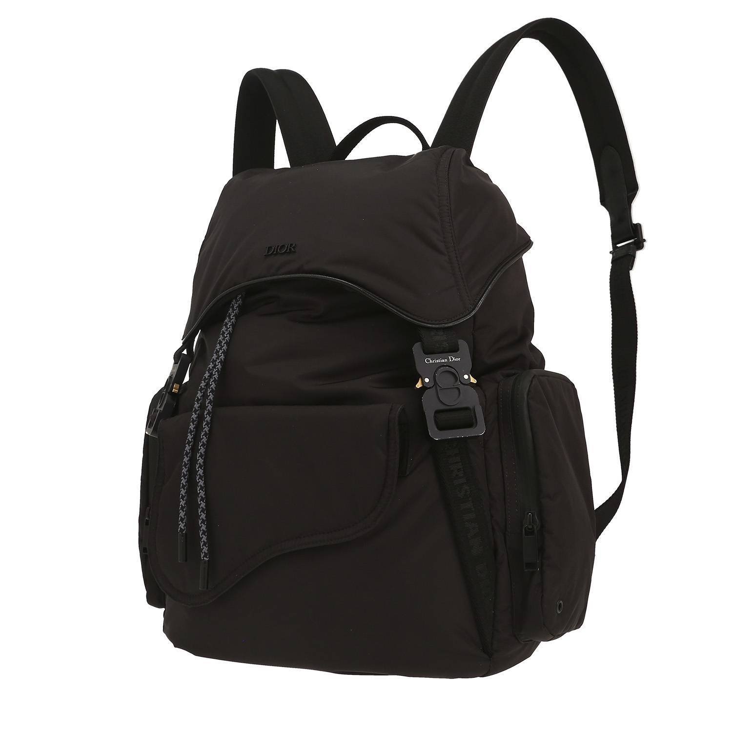 Splendid Dior Hit the Road backpack in black canvas, hardware in blackened metal, simple handle in black canvas, double adjustable strap in black canvas allowing the bag to be worn in the hand or on the back.