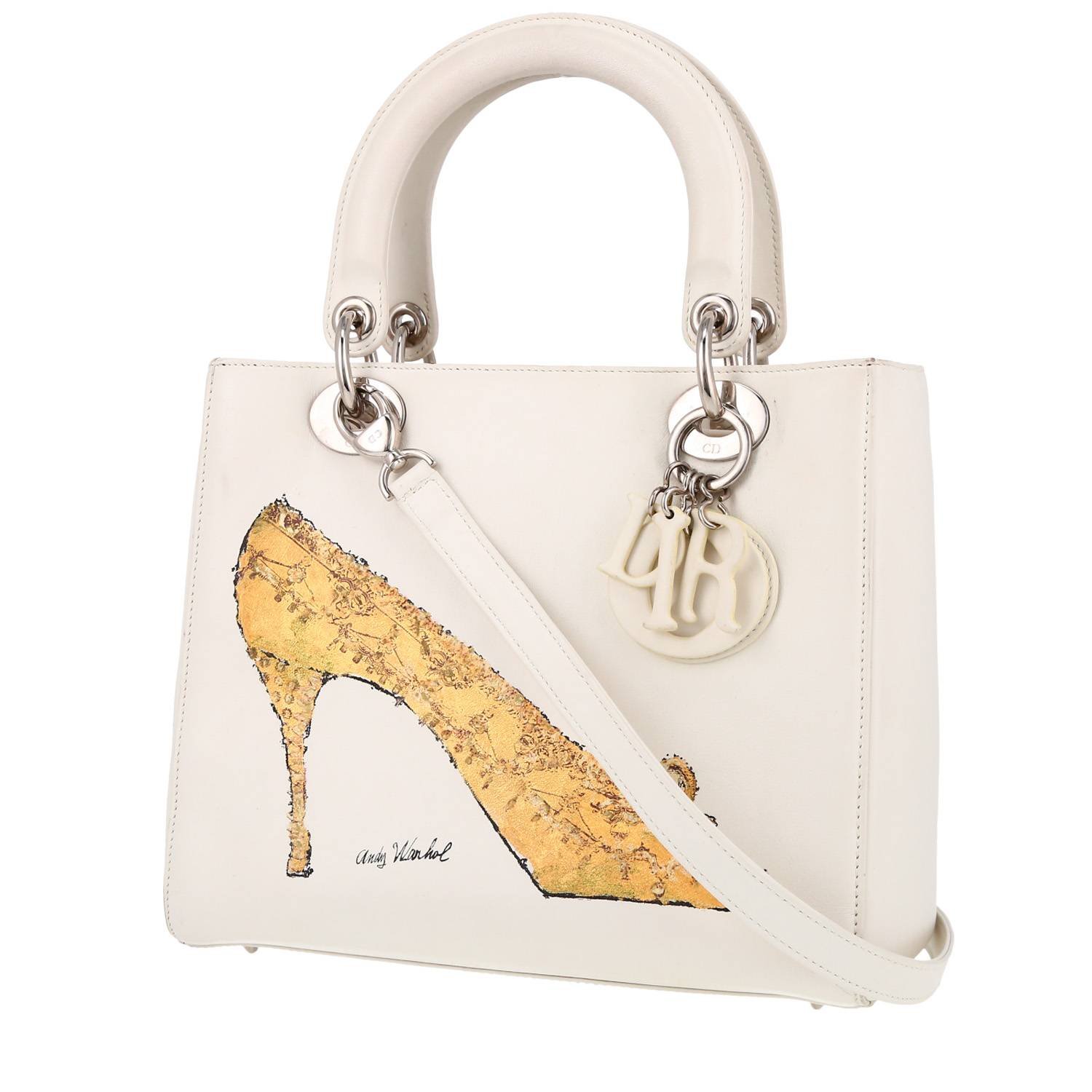Beautiful and rare Dior Lady Dior Edition Limitée handbag in white leather, hardware in silver metal, double handle in white leather, one shoulder strap allowing the bag to be worn in the hand or on the shoulder or accross the body.