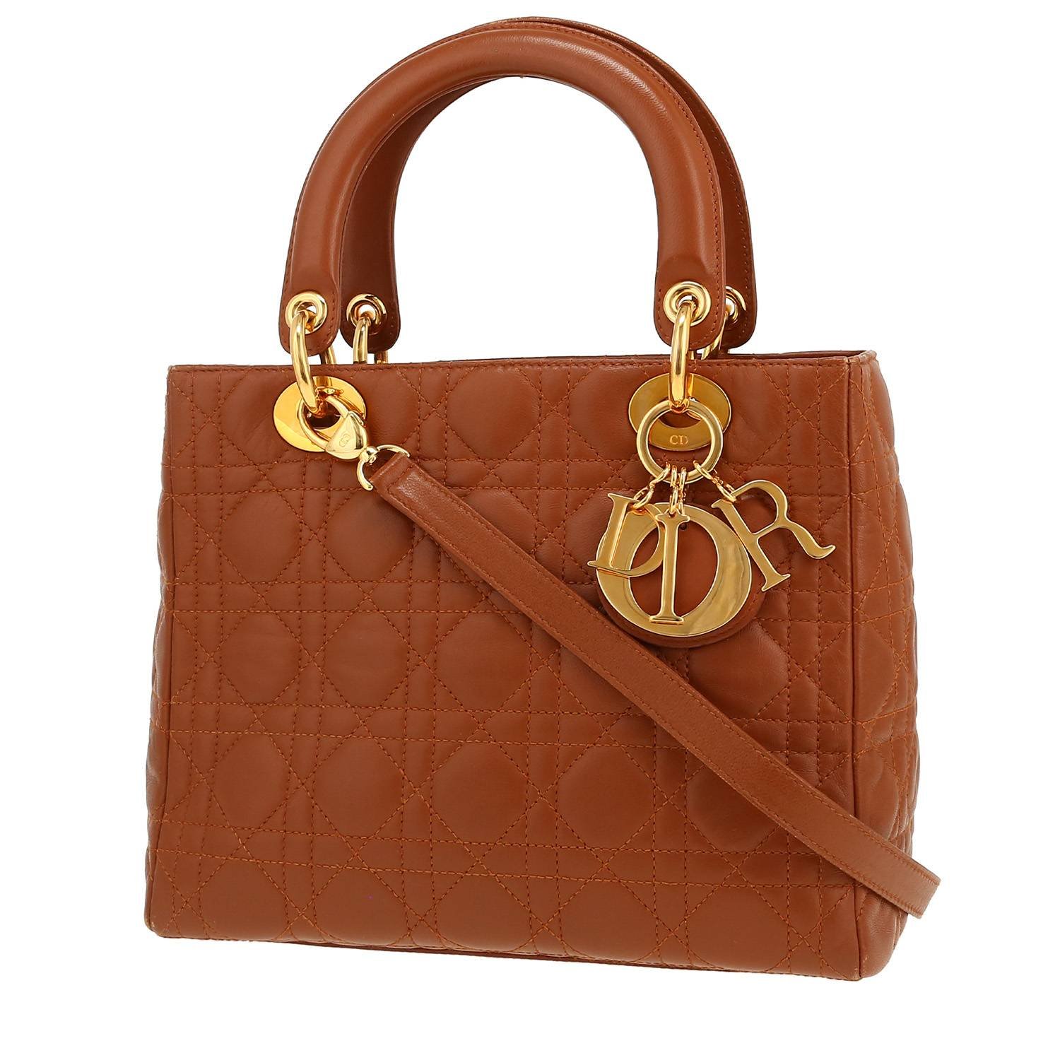 Magnificent Dior Lady Dior handbag in brown leather cannage, hardware in gilt metal, double handle in brown leather, brown leather removable strap to be worn accross the body allowing the bag to be worn in the hand or on the shoulder.