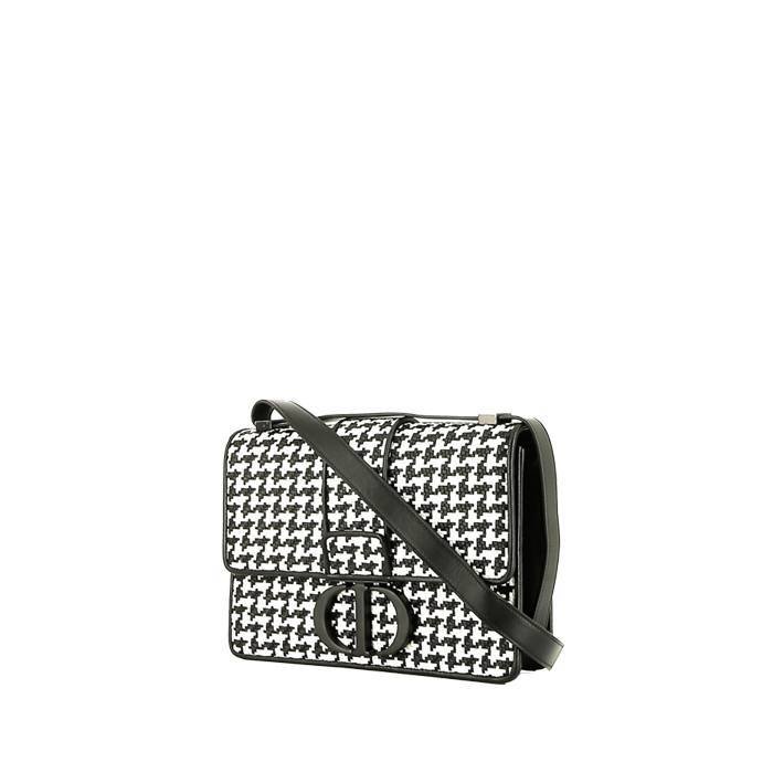 Elegant Dior Montaigne handbag in black and white leather, hardware in blackened metal, one adjustable strap in black leather allowing the bag to be worn in the hand or on the shoulder.