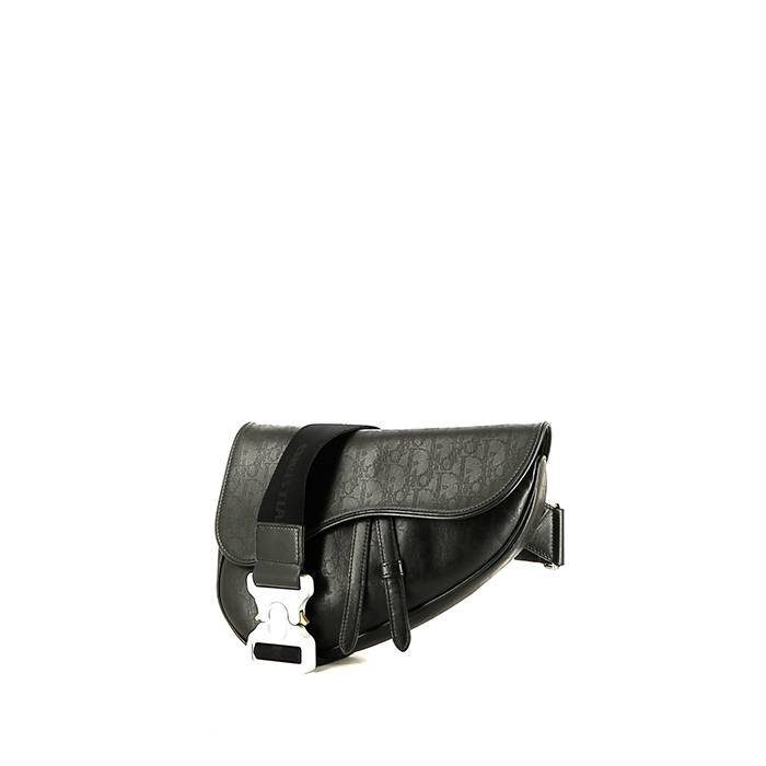 Beautiful and rare Dior Saddle Galaxy shoulder bag in black monogram leather, hardware in silver metal, shoulder strap in black canvas and leather allowing the bag to be worn on the shoulder or accross the body.
