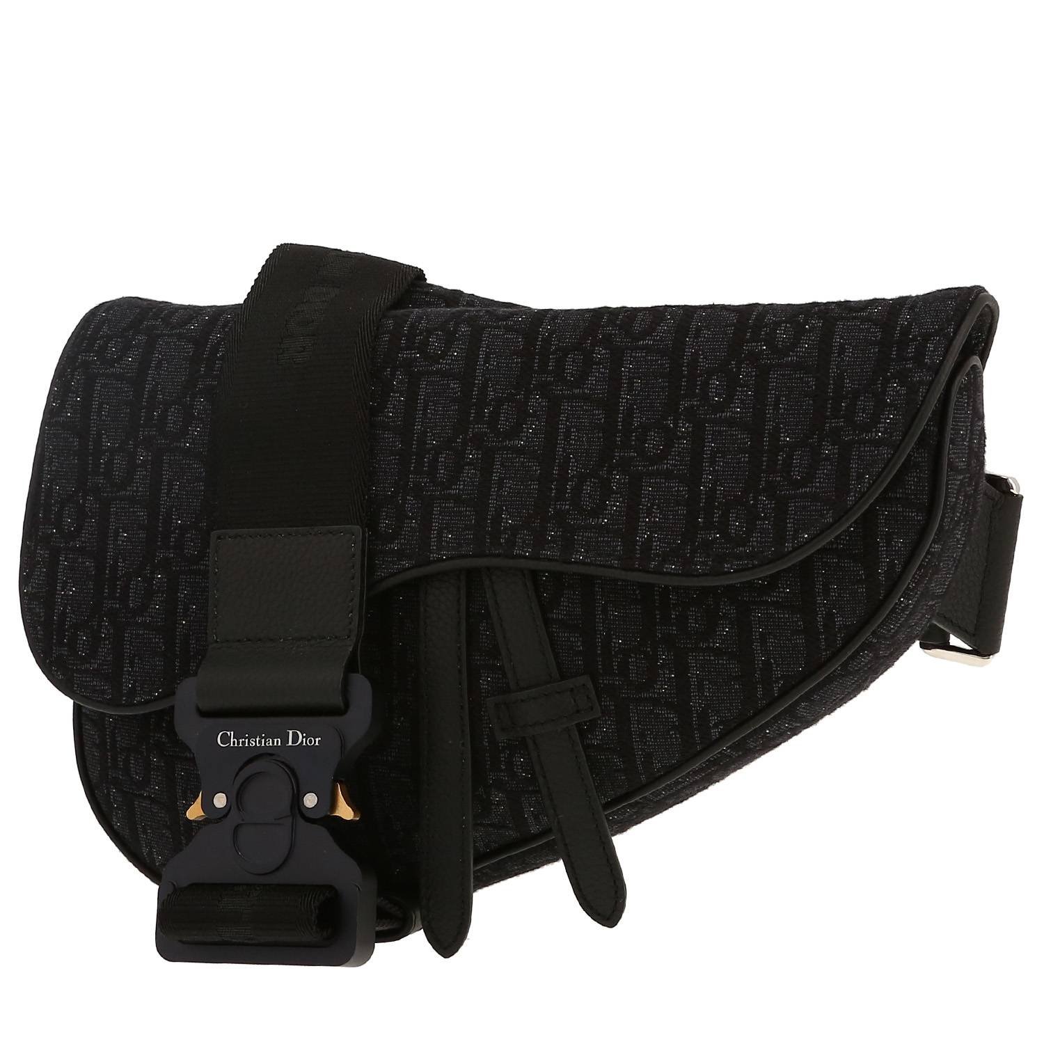 Splendid Dior Saddle shoulder bag in black logo canvas, hardware in silver metal, one adjustable handle in black canvas allowing the bag to be worn in the hand or on the shoulder.