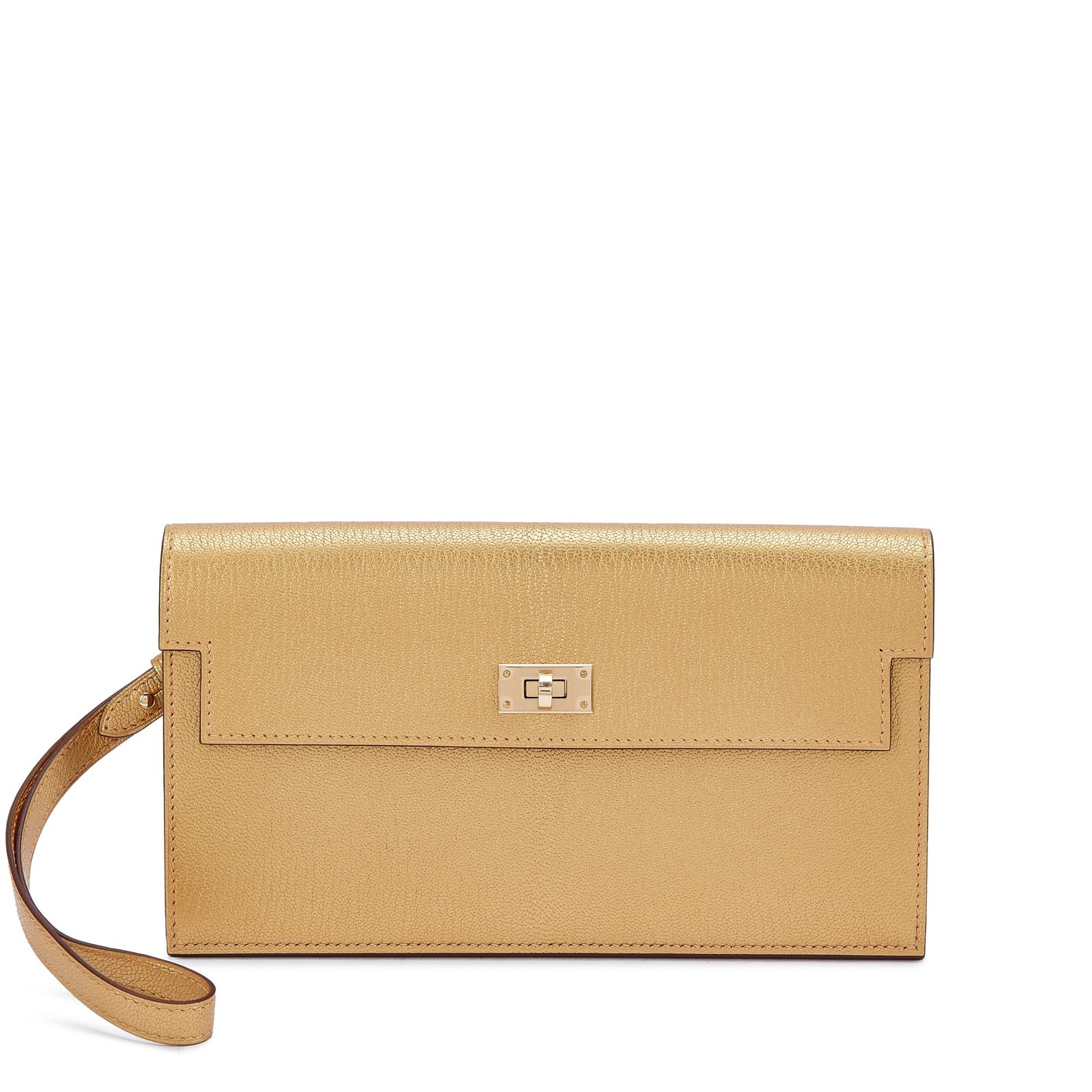Hermès Dore Chamkilight Metallic Kelly Pocket Long Wallet Permabrass Hardware, 2024