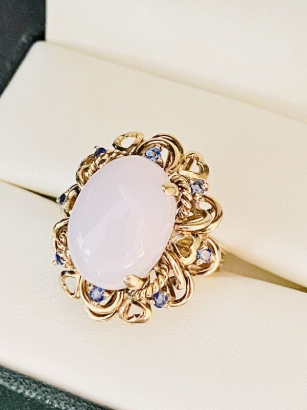 Estate 14k Yellow Gold White Jade & Sapphire Cocktail Ring Signed LILIA.