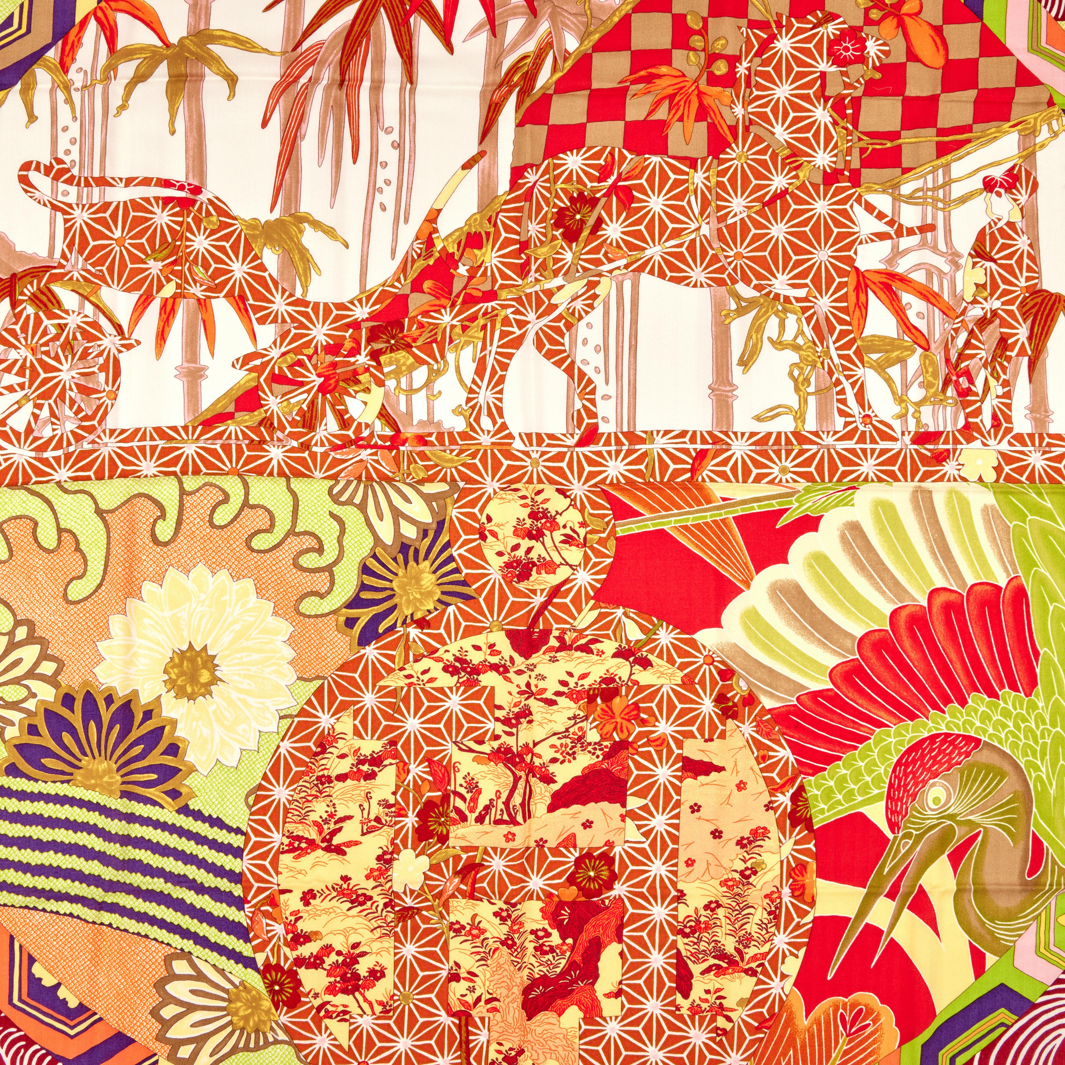 Hermès Ex-Libris en Kimonos Cashmere and Silk Shawl 140Designed by Anamorphee65% cashmere and 35% silk Includes ribbon and boxThis item is final sale and not eligible for return