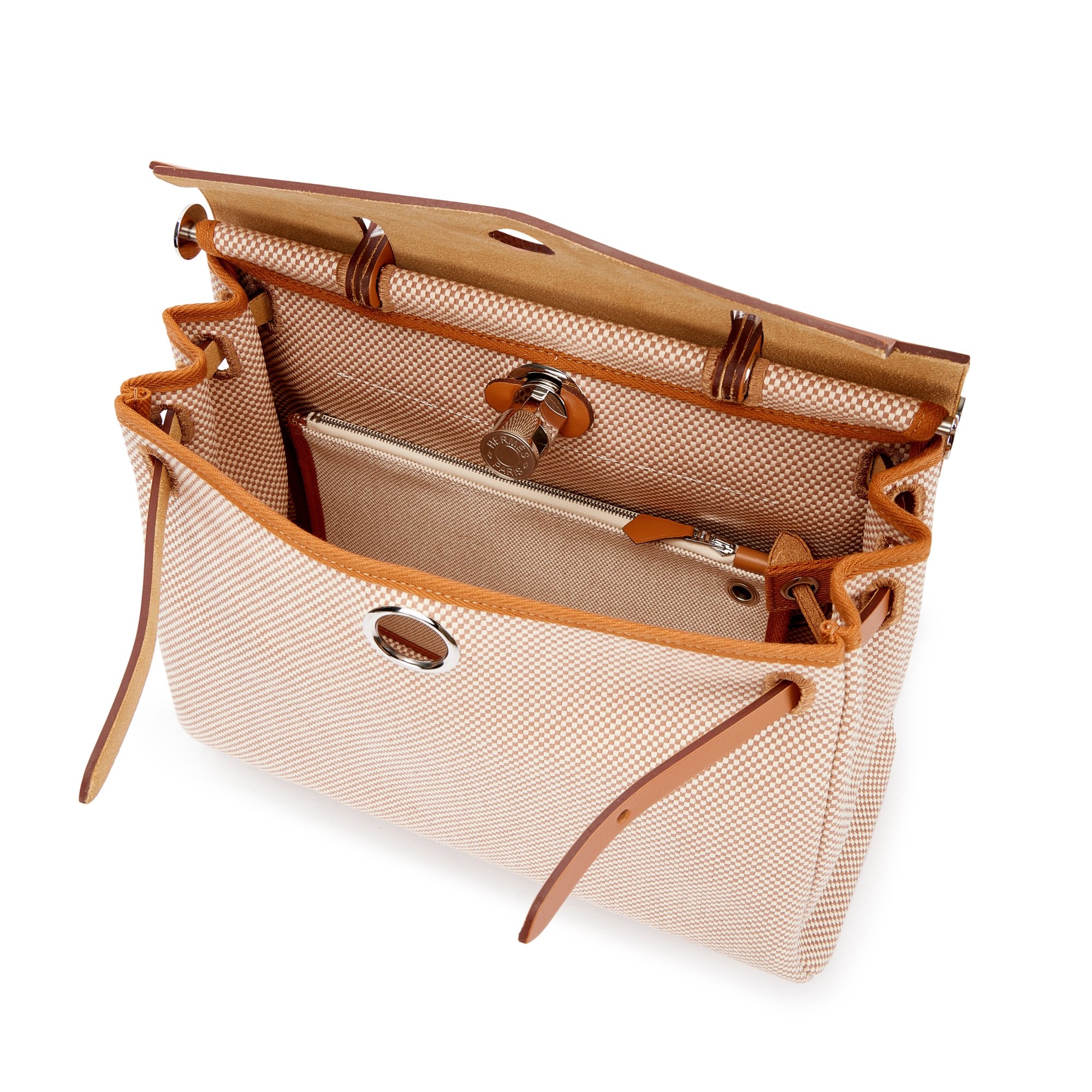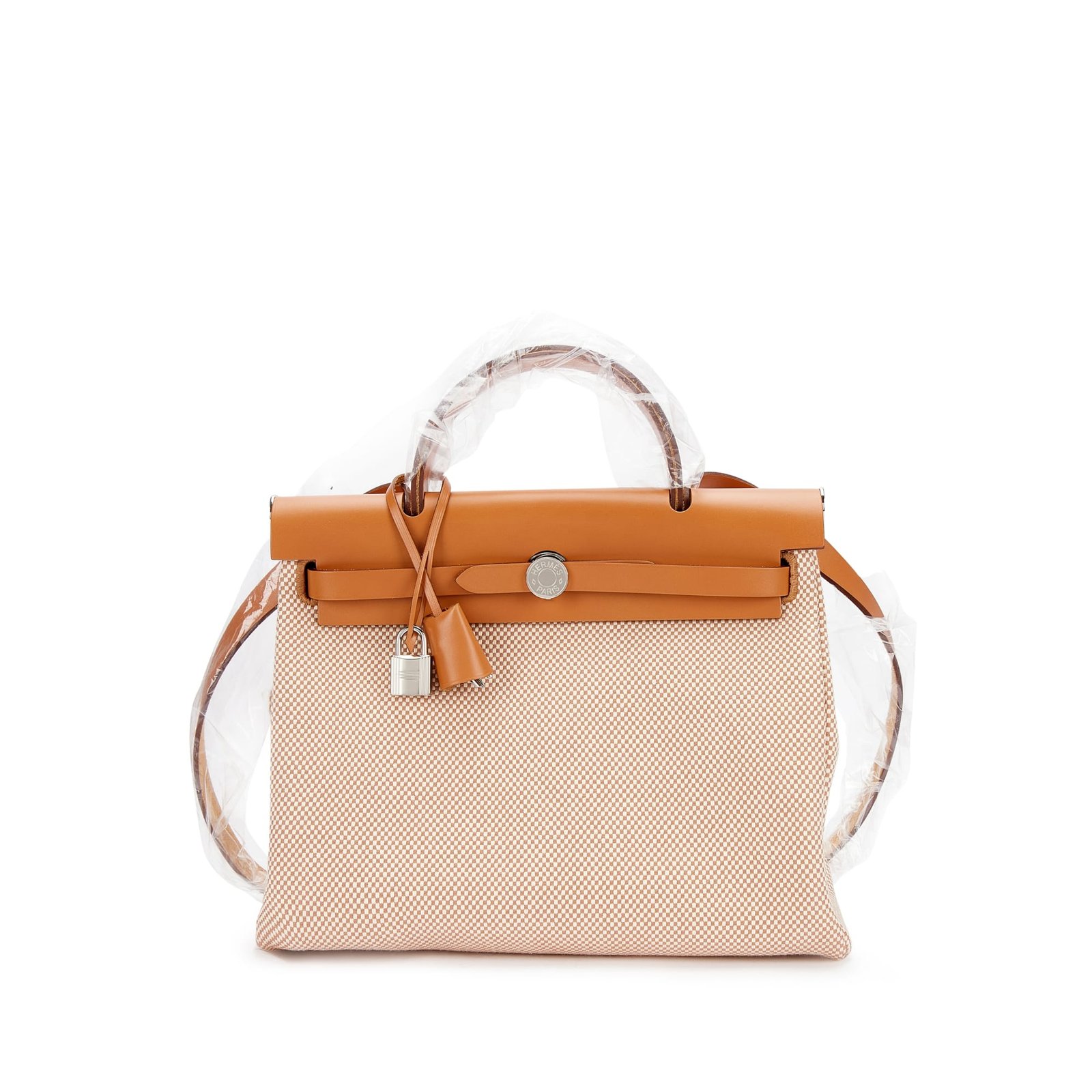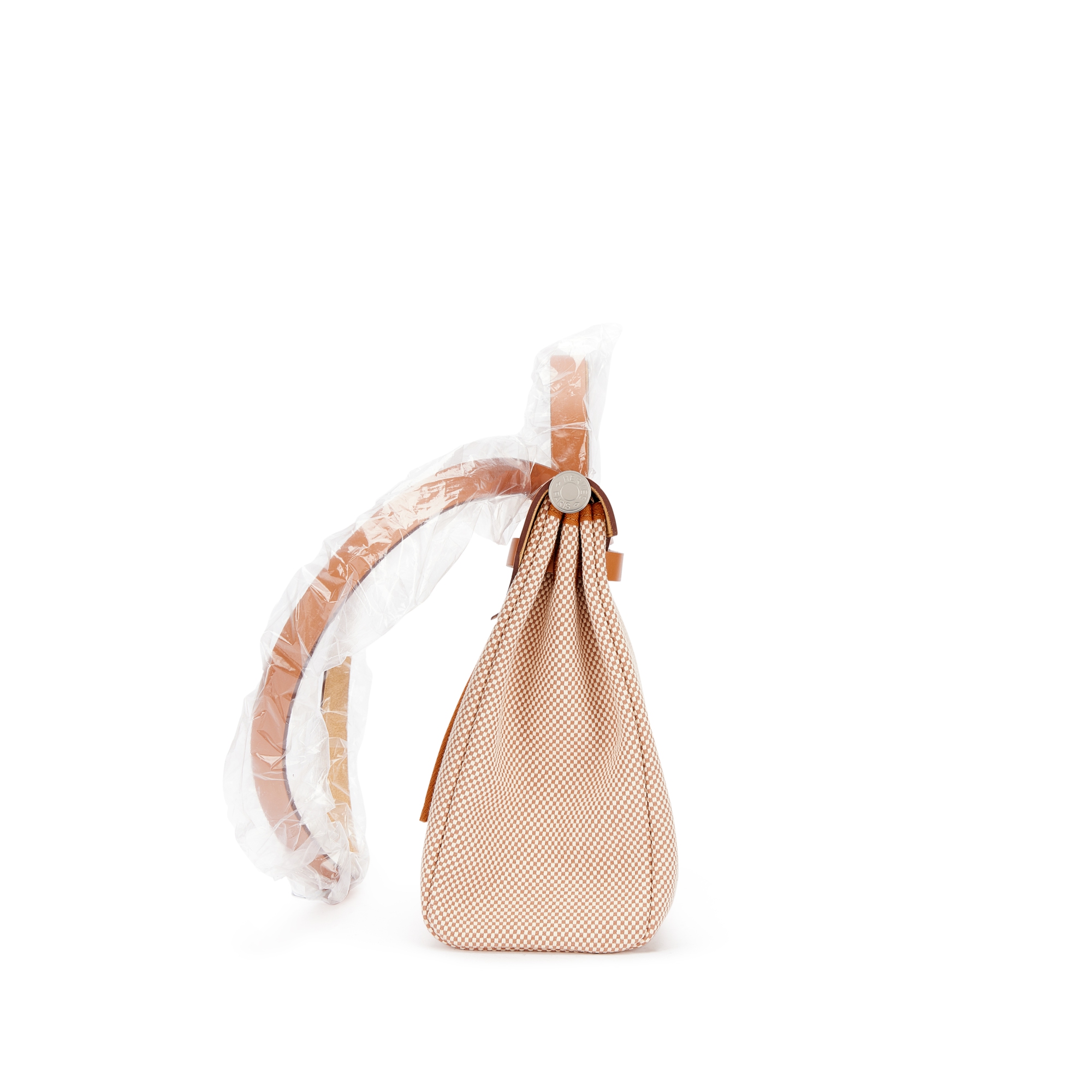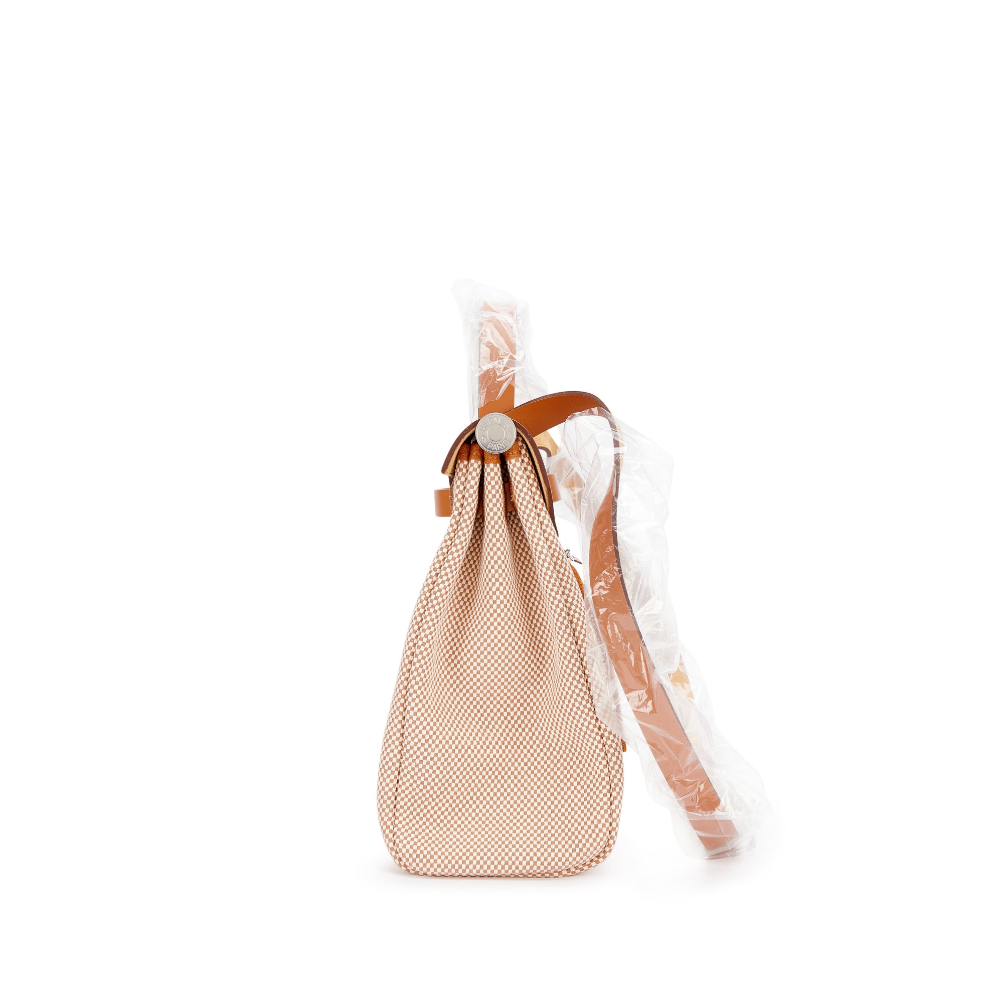 Hermès Fauve Vache Hunter and Ecru Toile Quadrille Herbag Zip 31 Palladium Hardware, 2024The interior is unlinedIncludes clochette, lock, keys, removable pouch, felt, care booklet, dust bag and boxThis item is final sale and not eligible for return