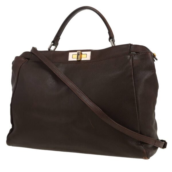 Classic large model Fendi Peekaboo handbag in brown leather, hardware in gilt and silver metal, simple handle in brown leather, one removable shoulder strap in brown leather allowing the bag to be worn in the hand or on the shoulder or accross the body.