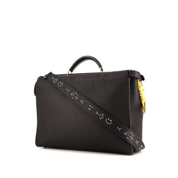 Practical large model Fendi Peekaboo Selleria shoulder bag in black leather, hardware in silver metal, simple handle in black leather, one strap in black leather with pattern.