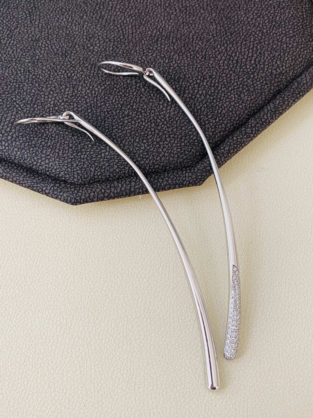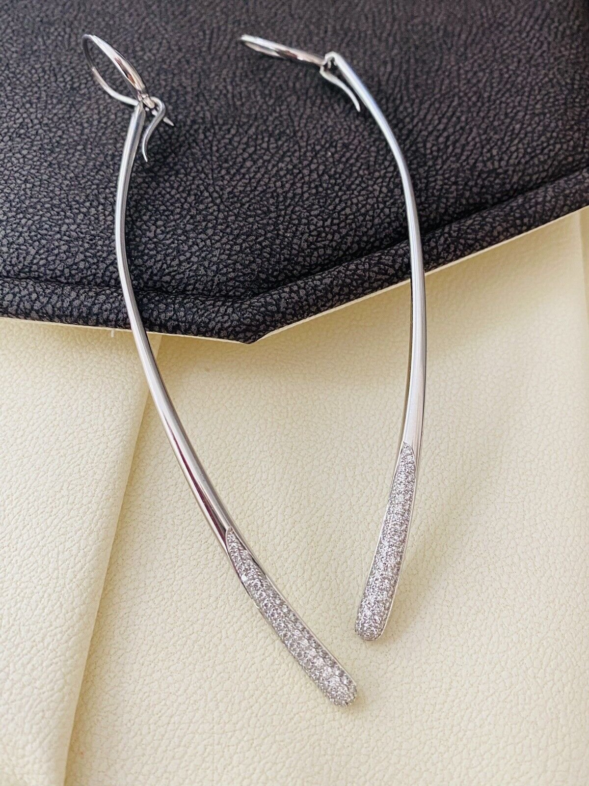 Stunning and rare all 18k white gold Georg Jensen diamond drop earrings. The earrings measure 4-inch long and weigh 16 grams. There is .56 carats of natural white diamonds that are VS quality and F color. The earrings are spectacular. They are in perfect like new condition and come in a nice generic jewelry box.