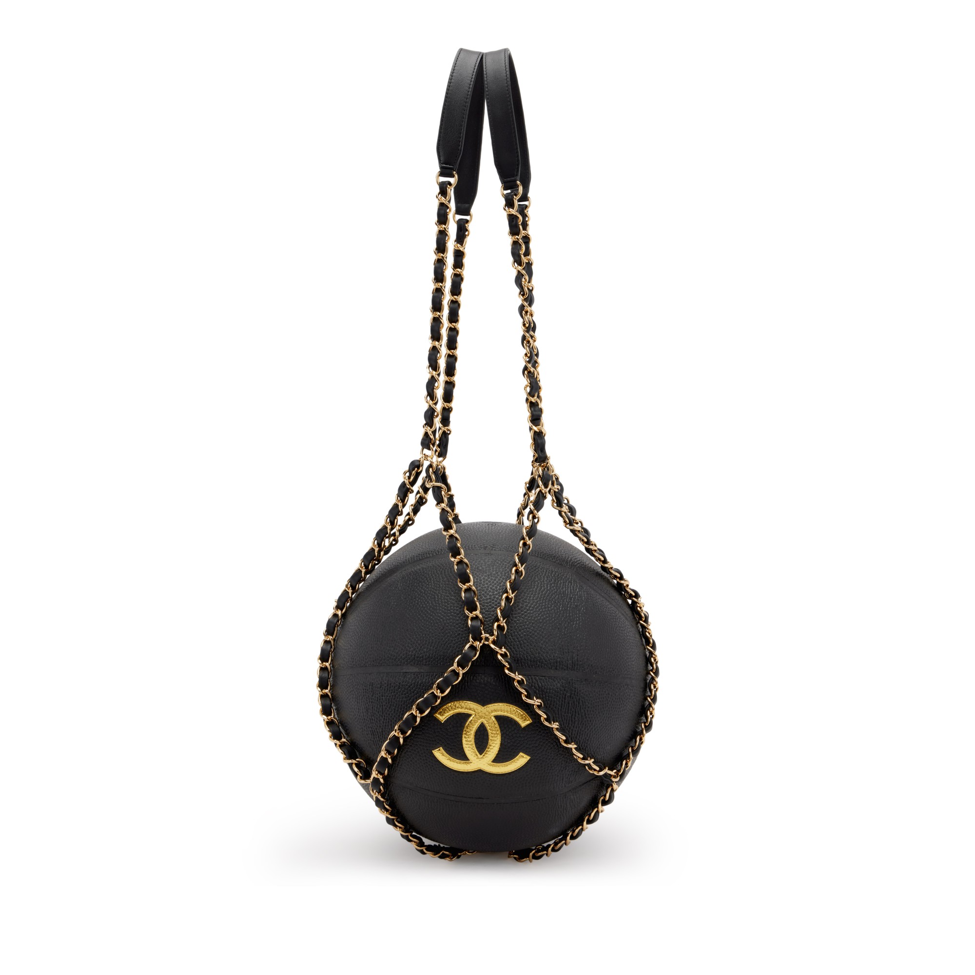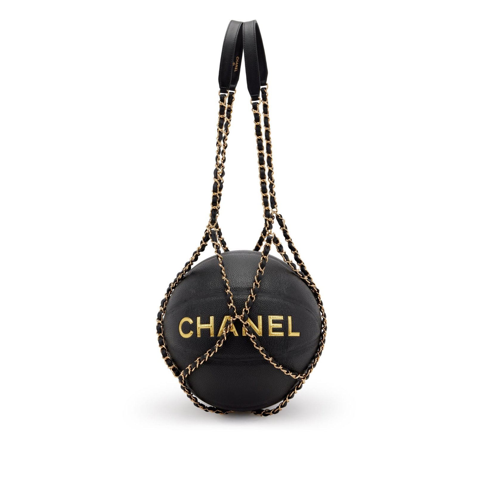 Chanel Gold and Black Rubber Basketball and Black Calfskin Chain Net Gold Hardware, 2019This piece was featured during the Autumn/Winter 2019 collectionIncludes two dustbags, tag and boxThis item is final sale and not eligible for return