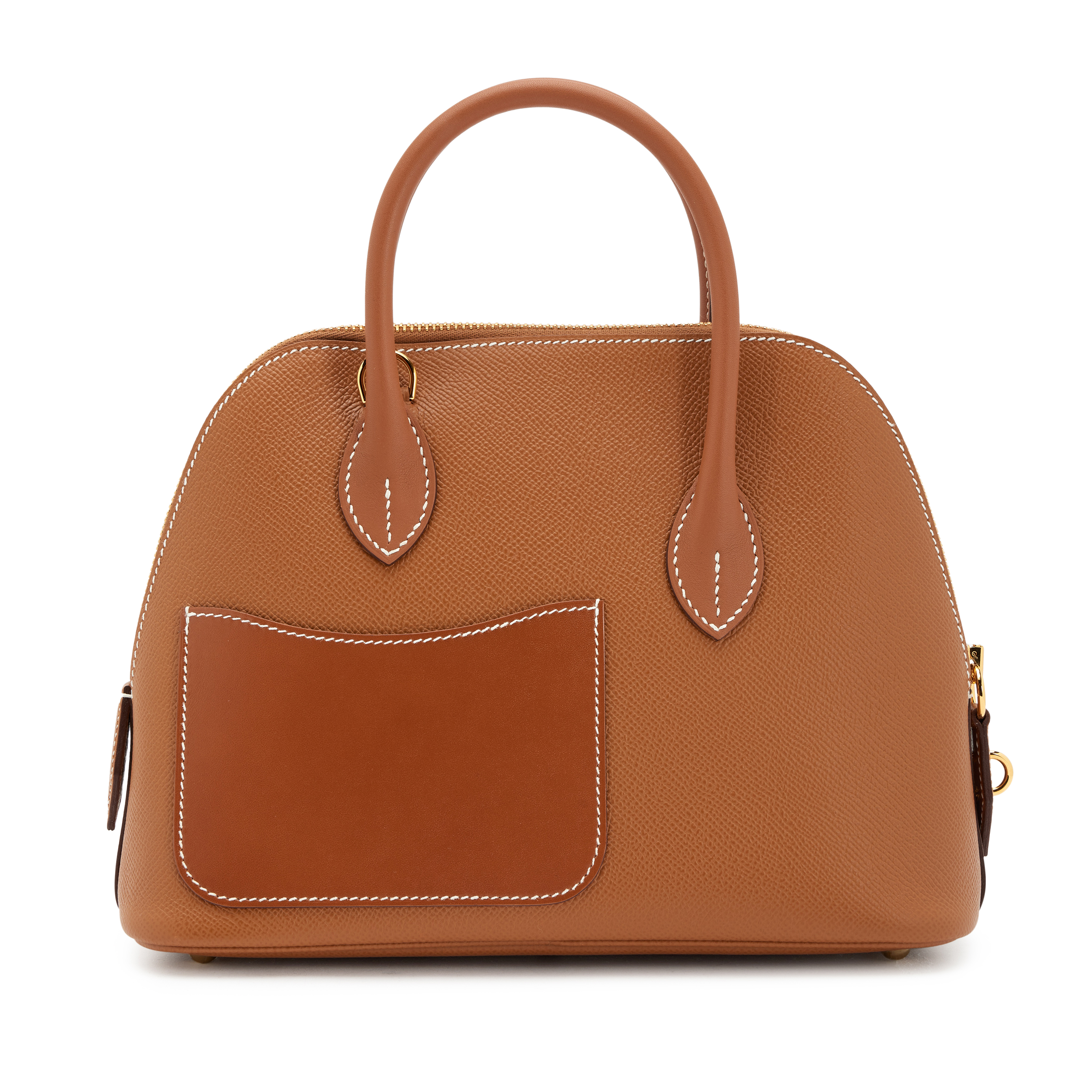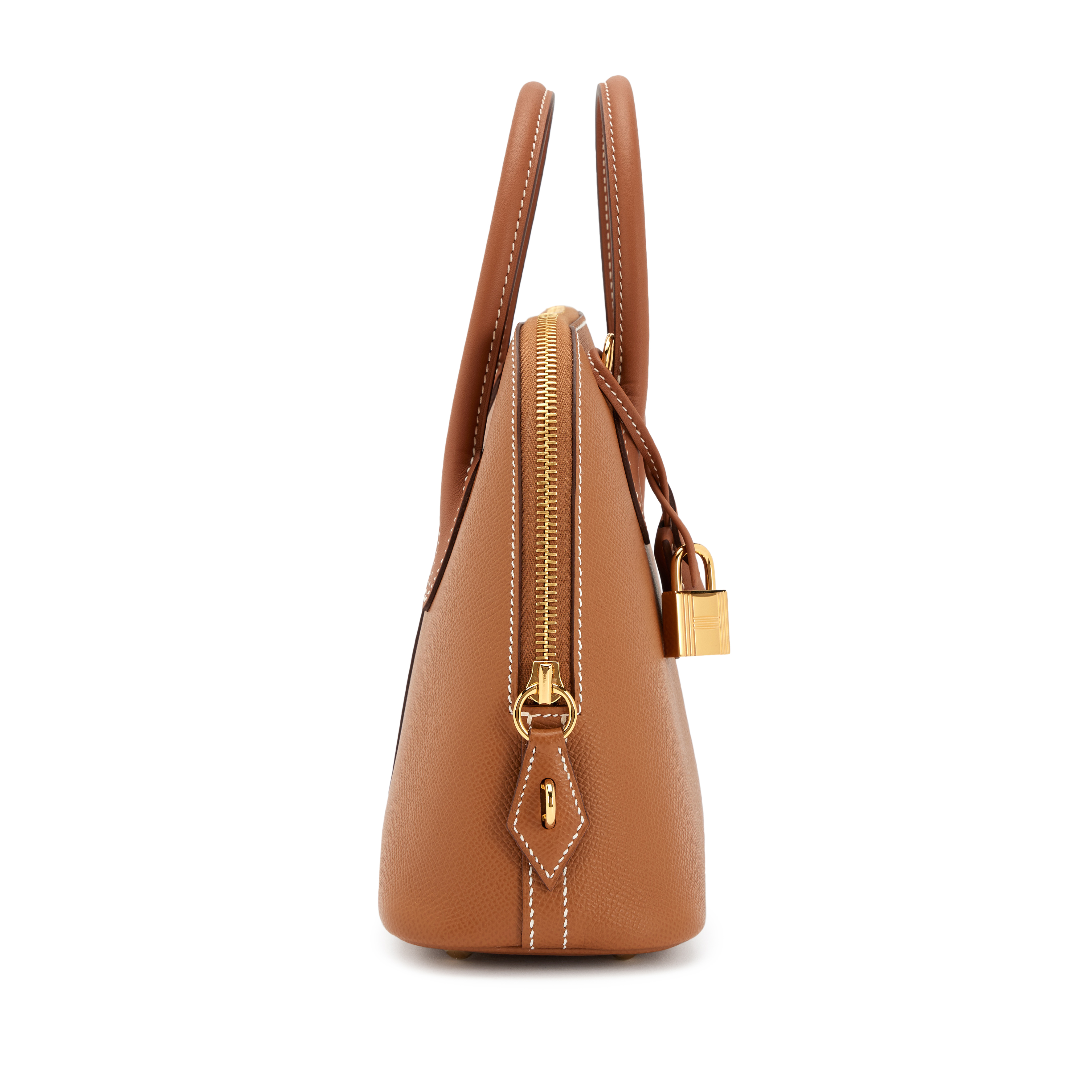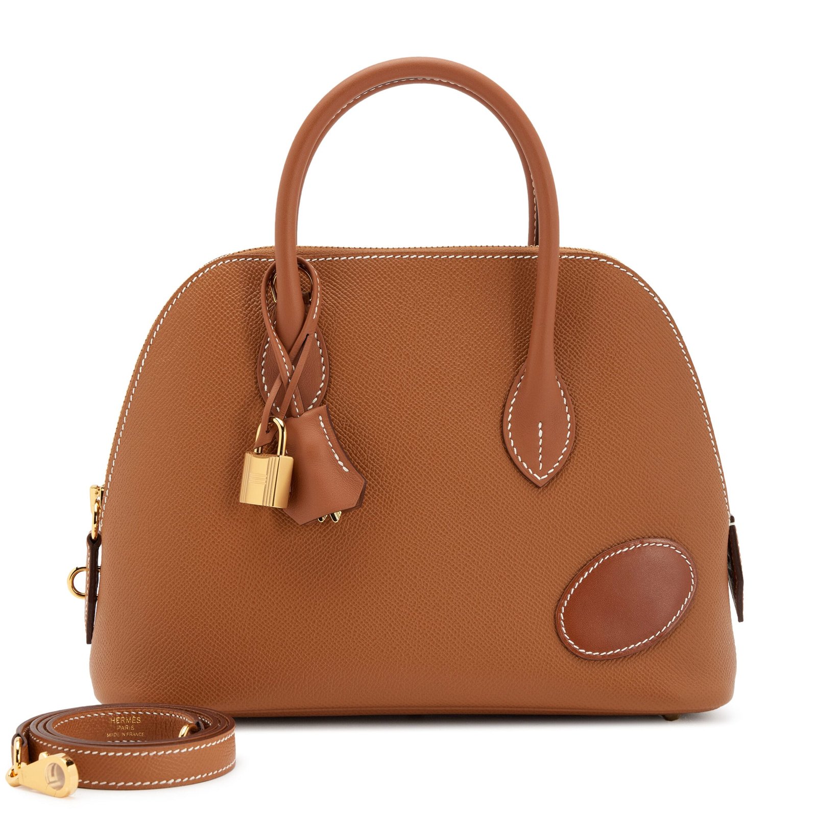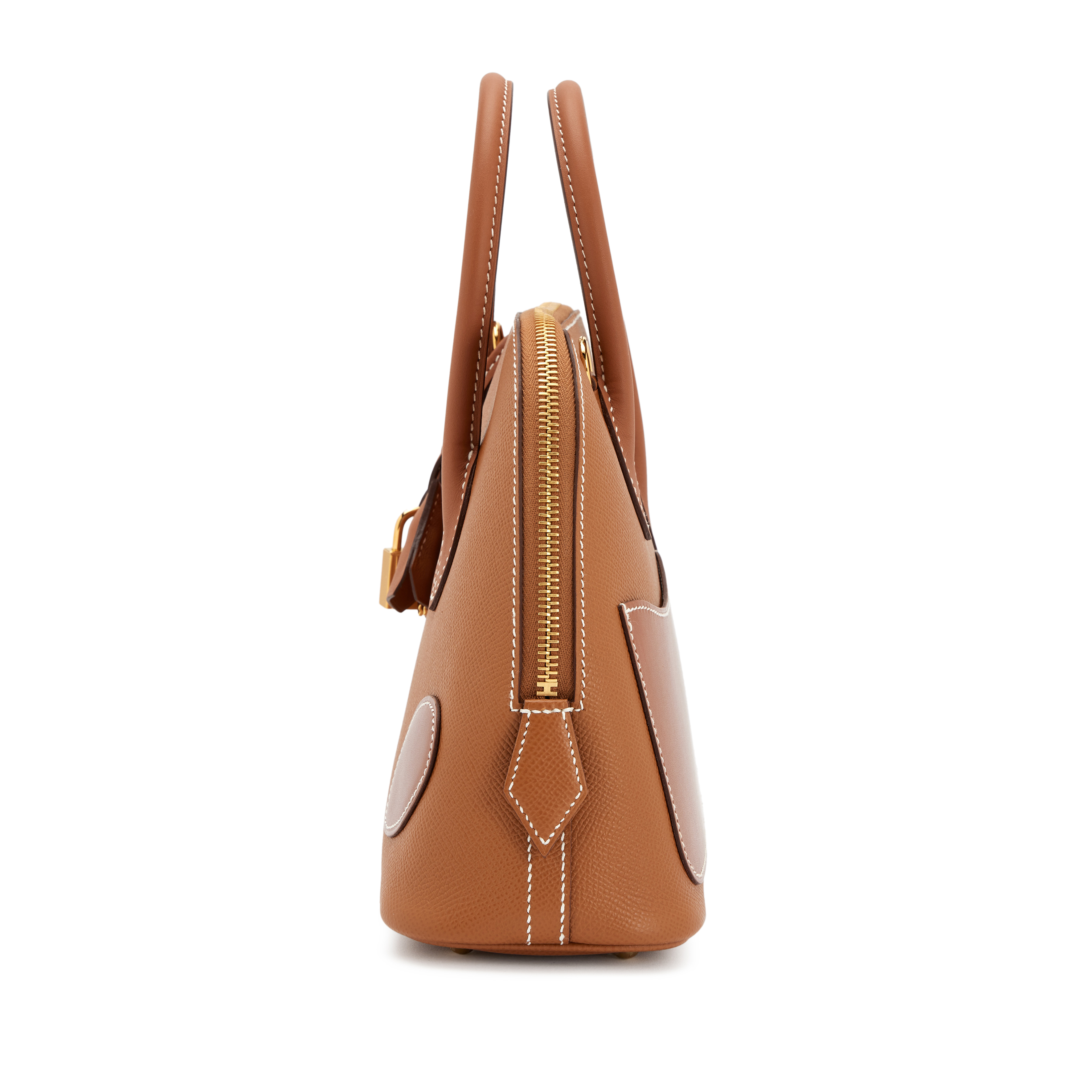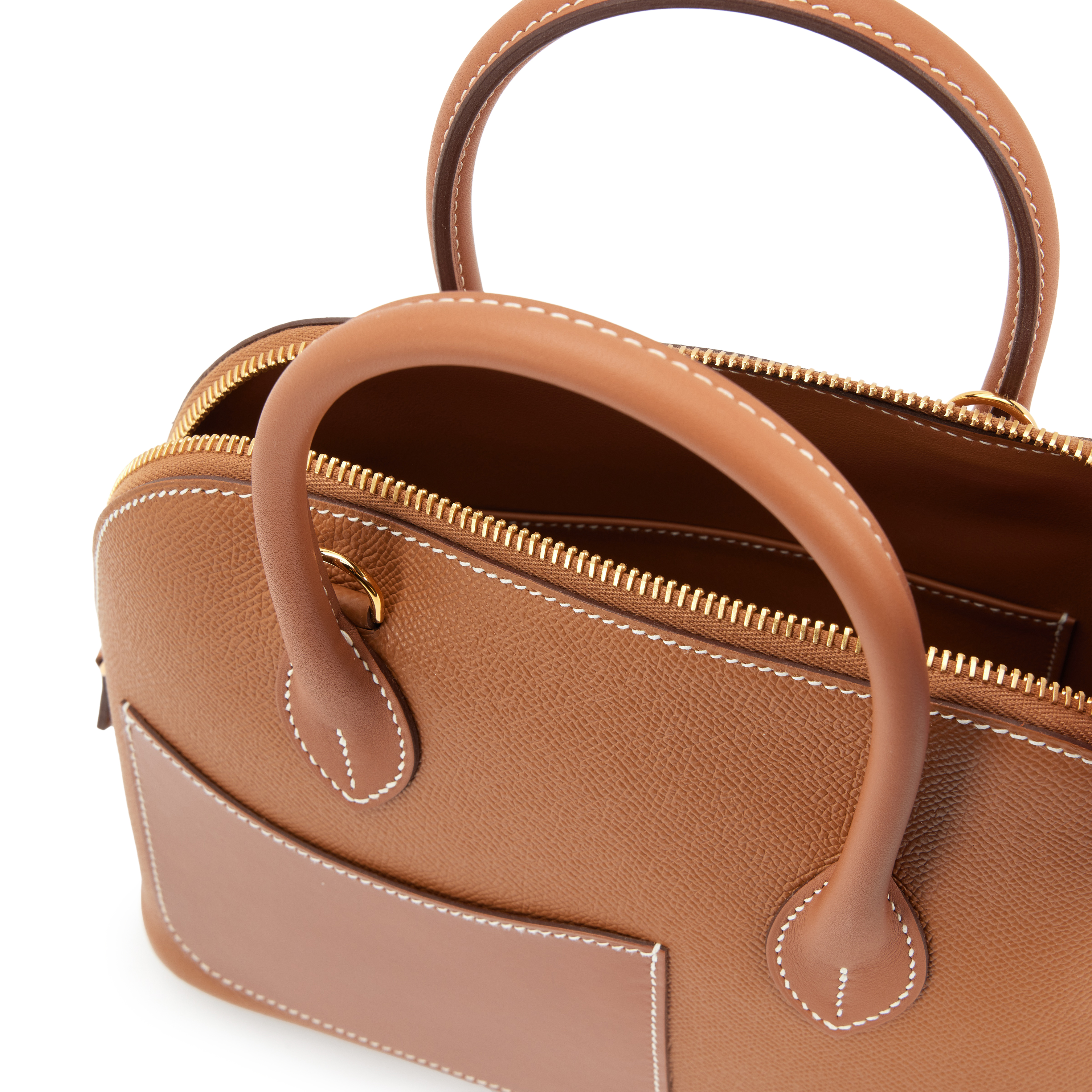 Hermès Gold Epsom and Fauve Barenia Bolide 1923 Desordre 25 Gold Hardware, 2022The interior is lined in a tonal swift leatherIncludes lock, two keys, clochette, clochette dust bag, shoulder strap, shoulder strap dust bag, raincoat, dust bag, and boxThis item is final sale and not eligible for return