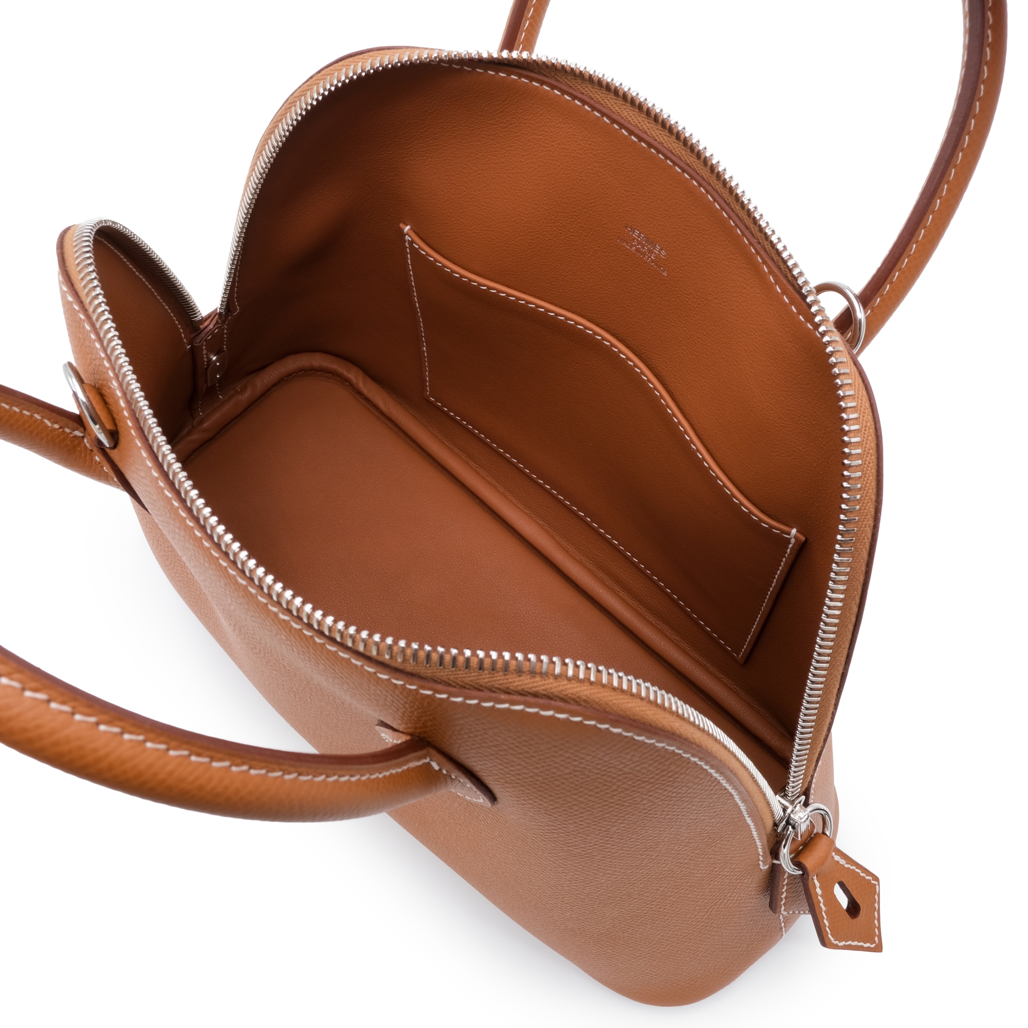 Hermès Gold Epsom Bolide 1923 25 Palladium Hardware, 2024The interior is lined with tonal leatherIncludes strap, clochette, lock, keys, care booklet, dust bag, and boxThis item is final sale and not eligible for return