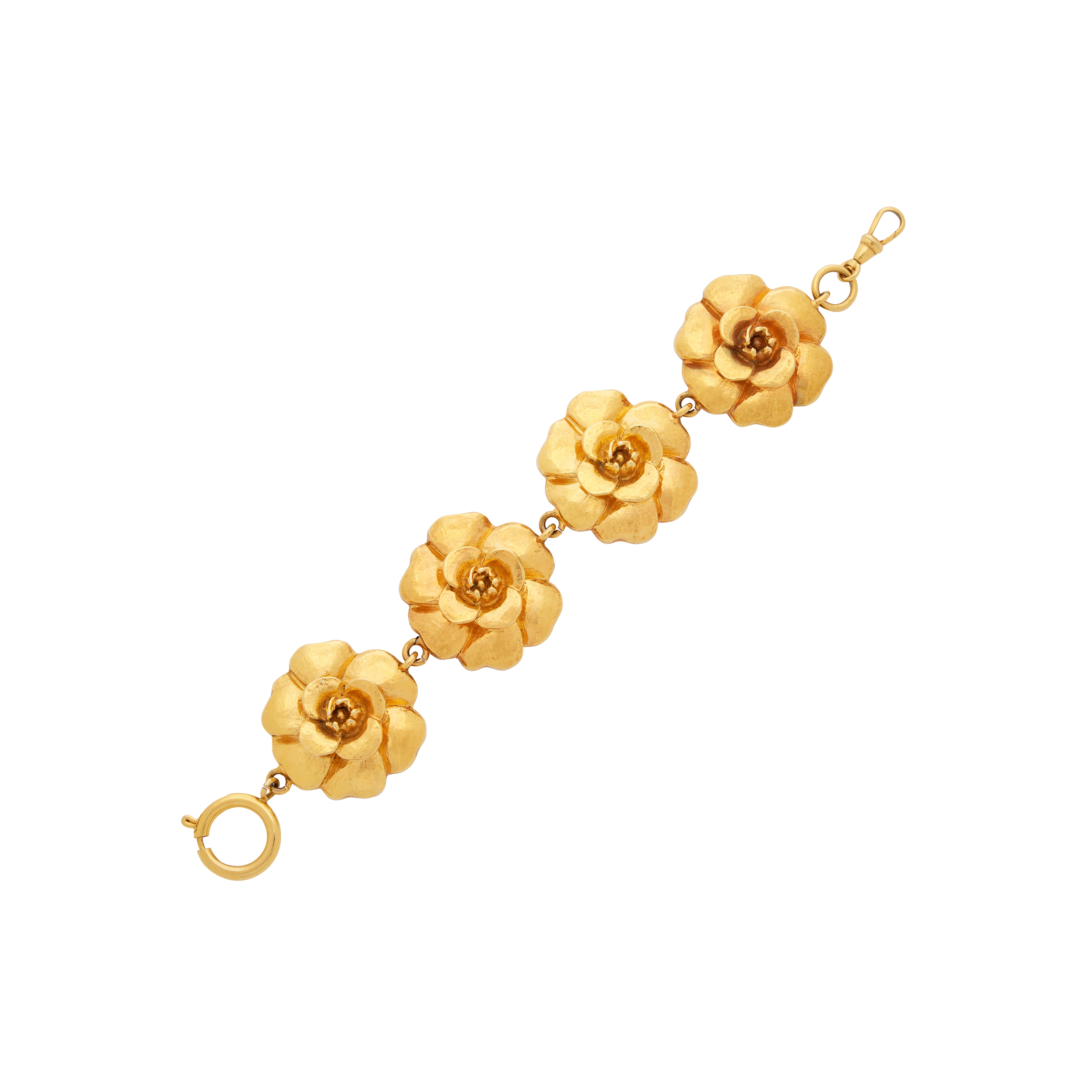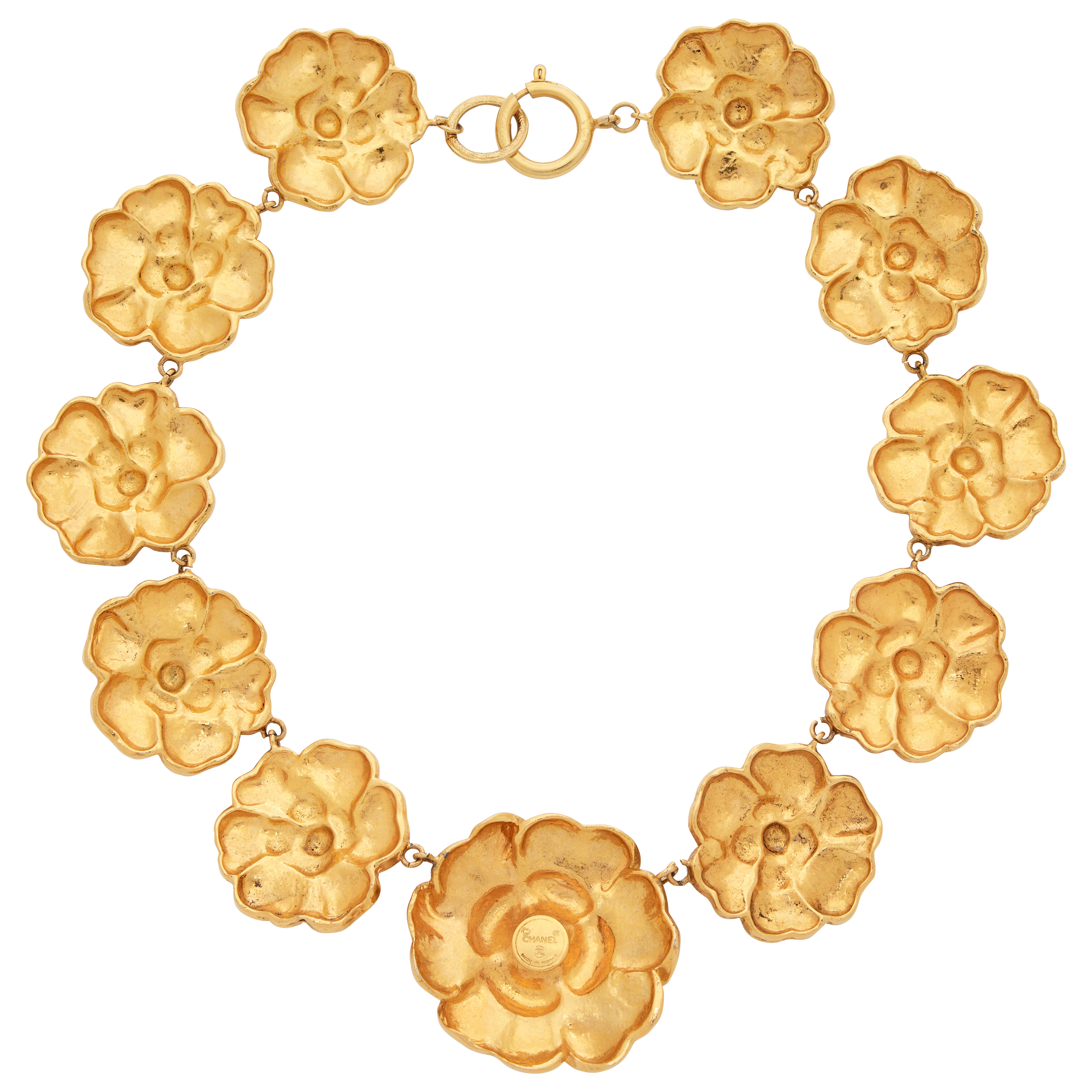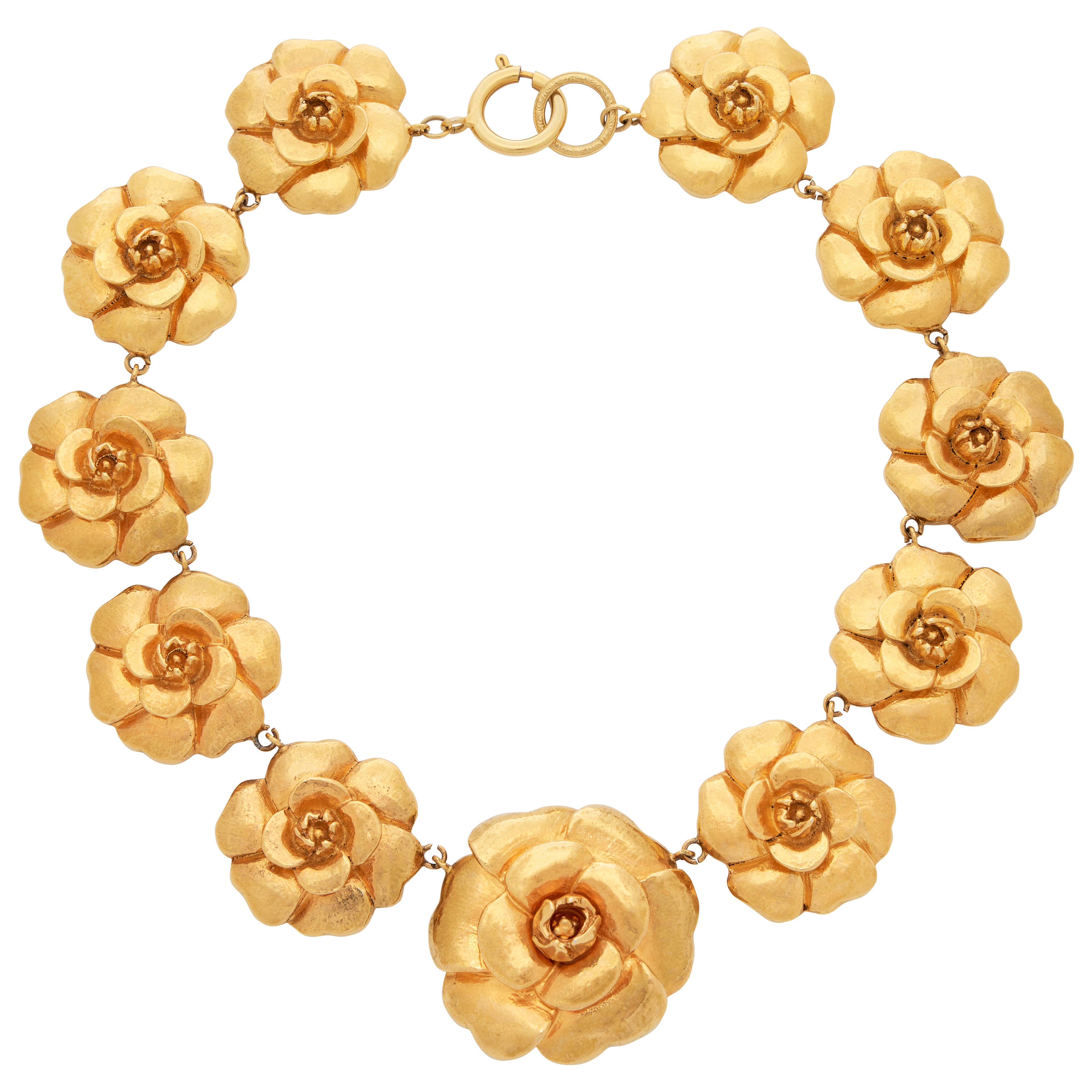 Chanel Gold Gilt Camellia Flower Necklace With Adaptable Bracelet, 1998This item is final sale and not eligible for return