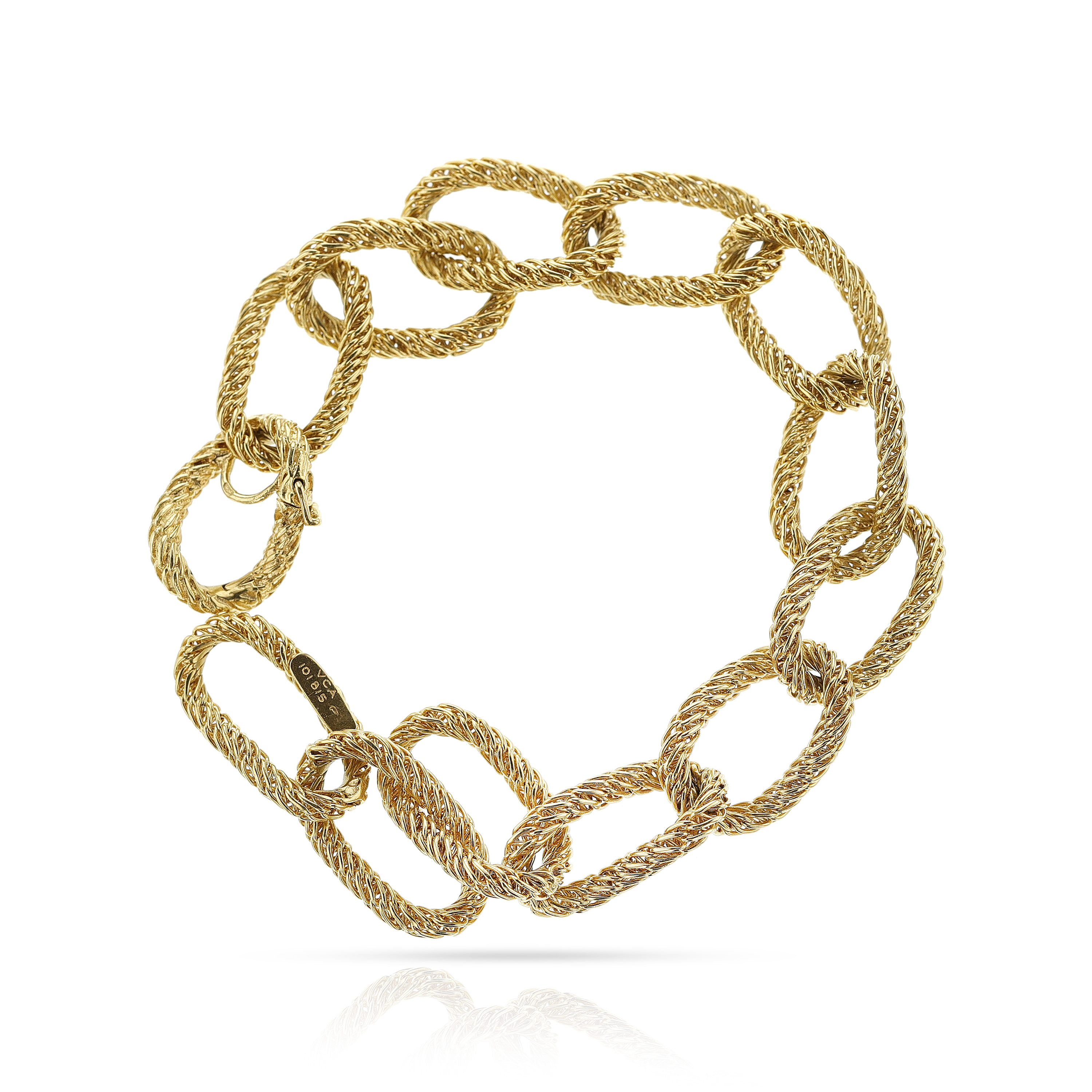 A link bracelet composed of braided gold wire.Signed Van Cleef & Arpels, with serial numbersFrench hallmarks and maker’s mark for George Lenfant18 karat yellow goldTotal weight 30.88 gramsLength 8 inches