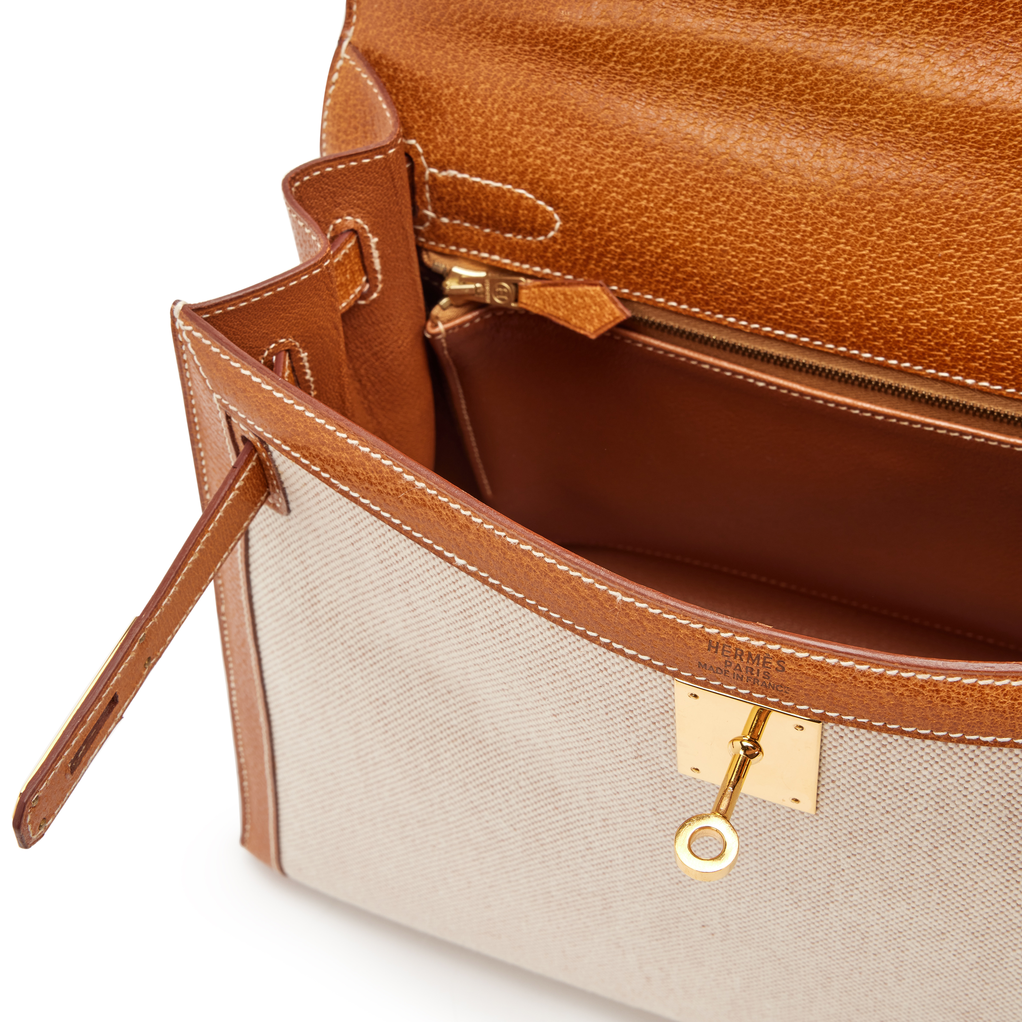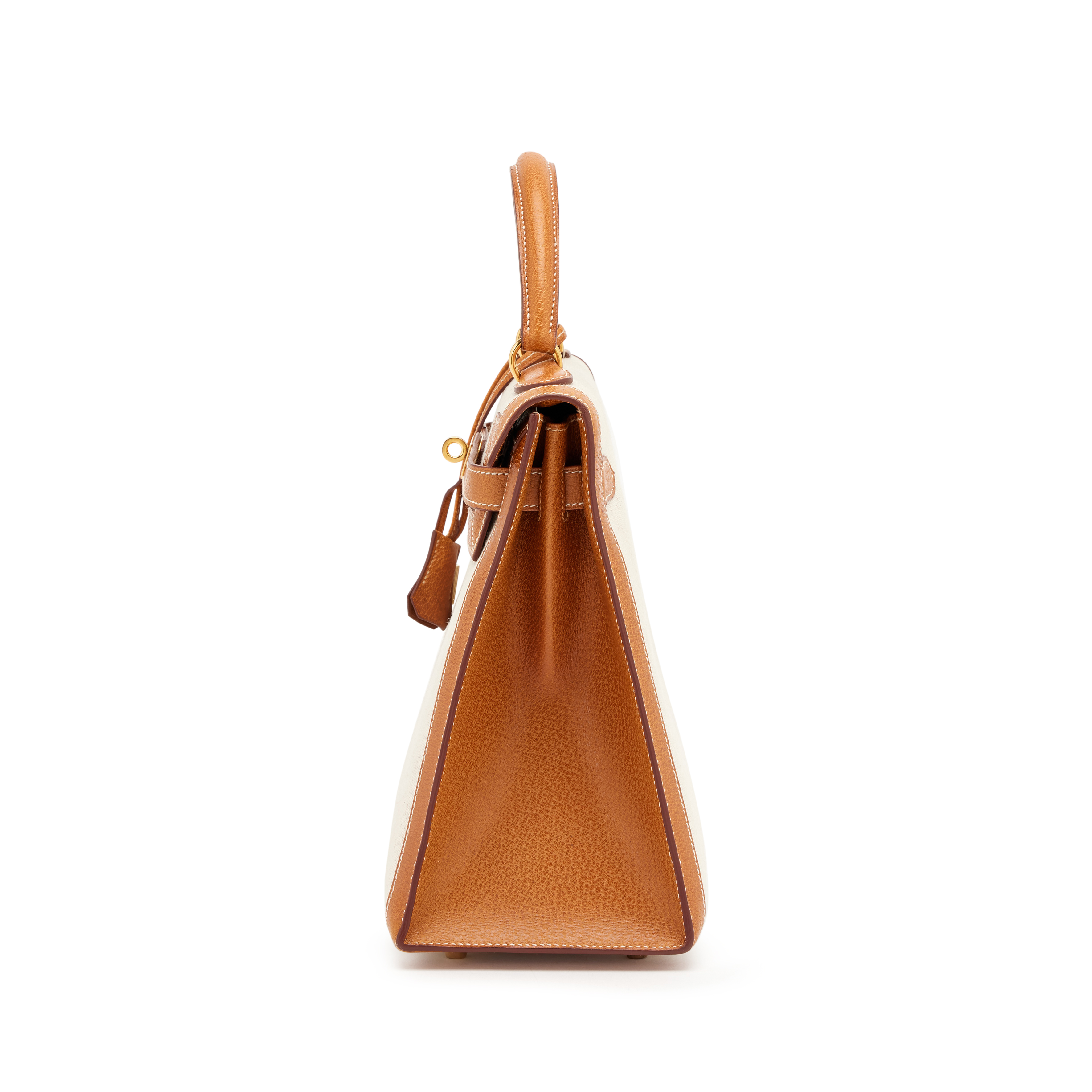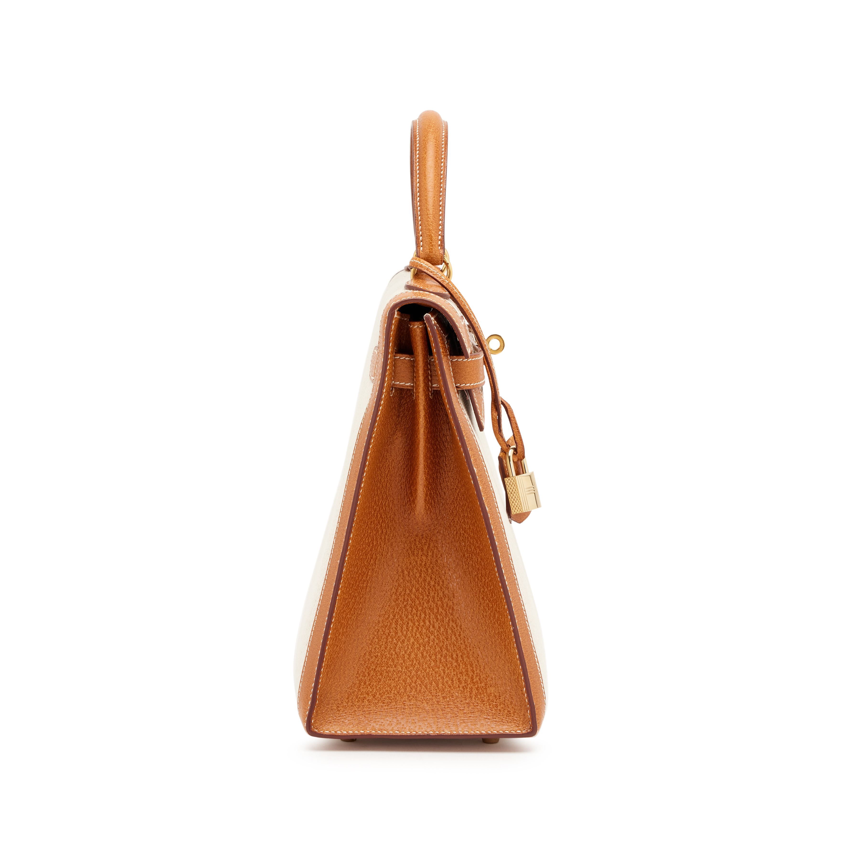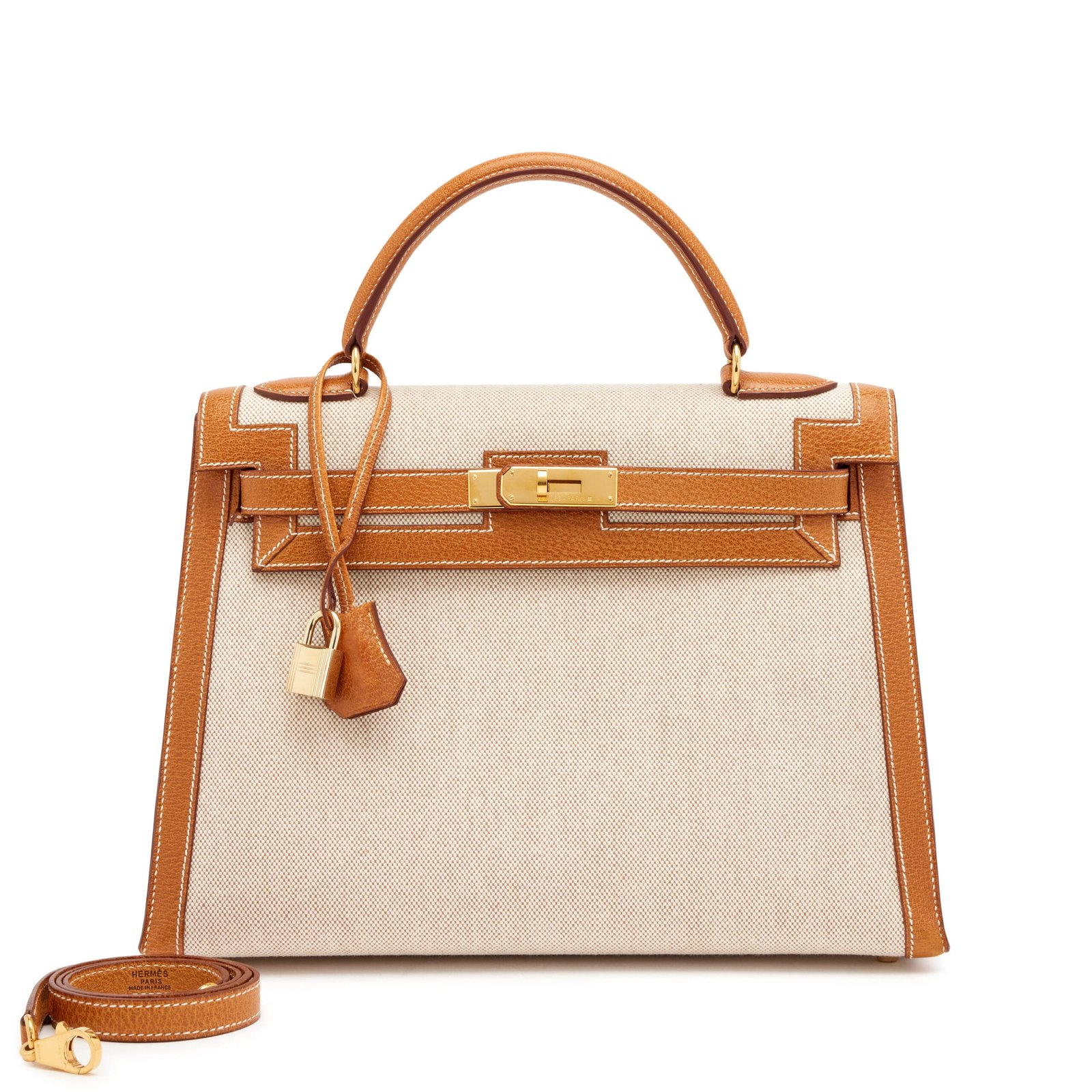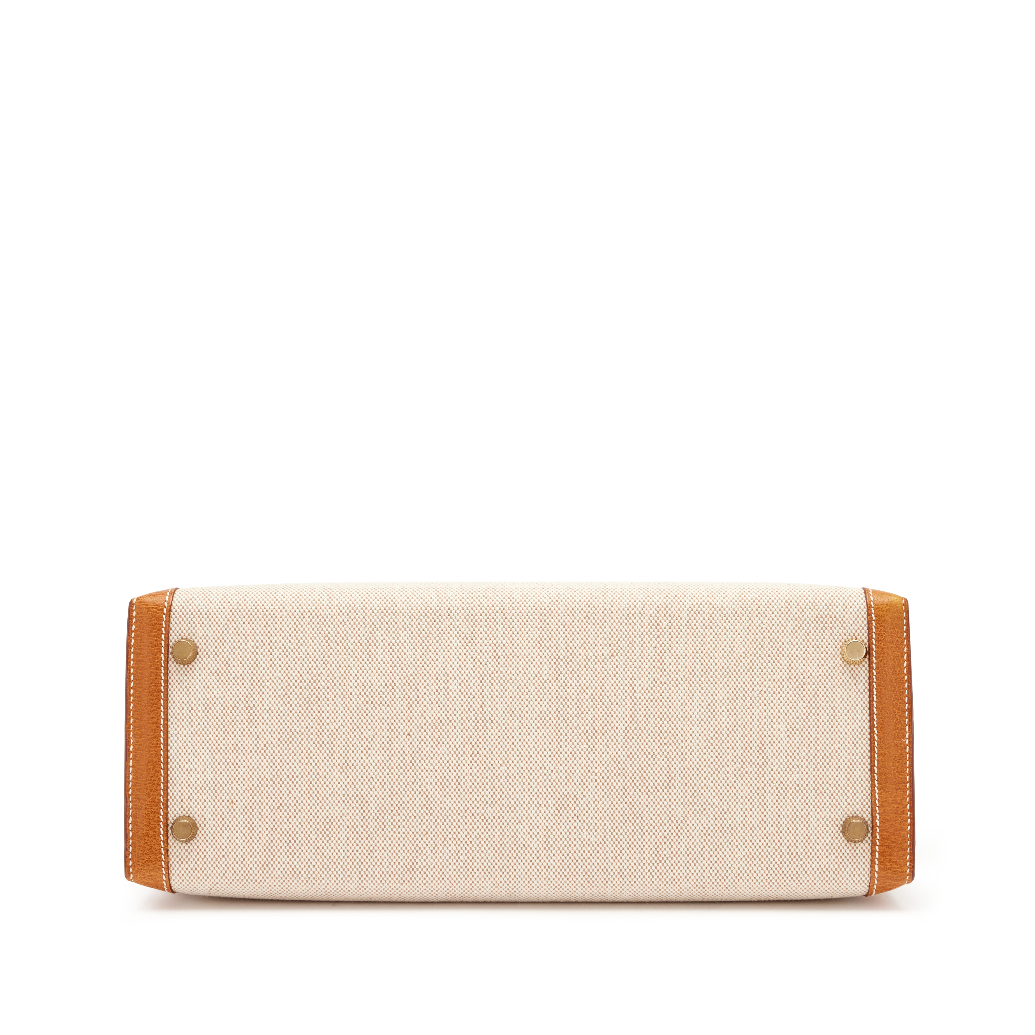Hermès Gold Peau Porc and Natural Toile Sellier Kelly 32 Gold Hardware, 1994